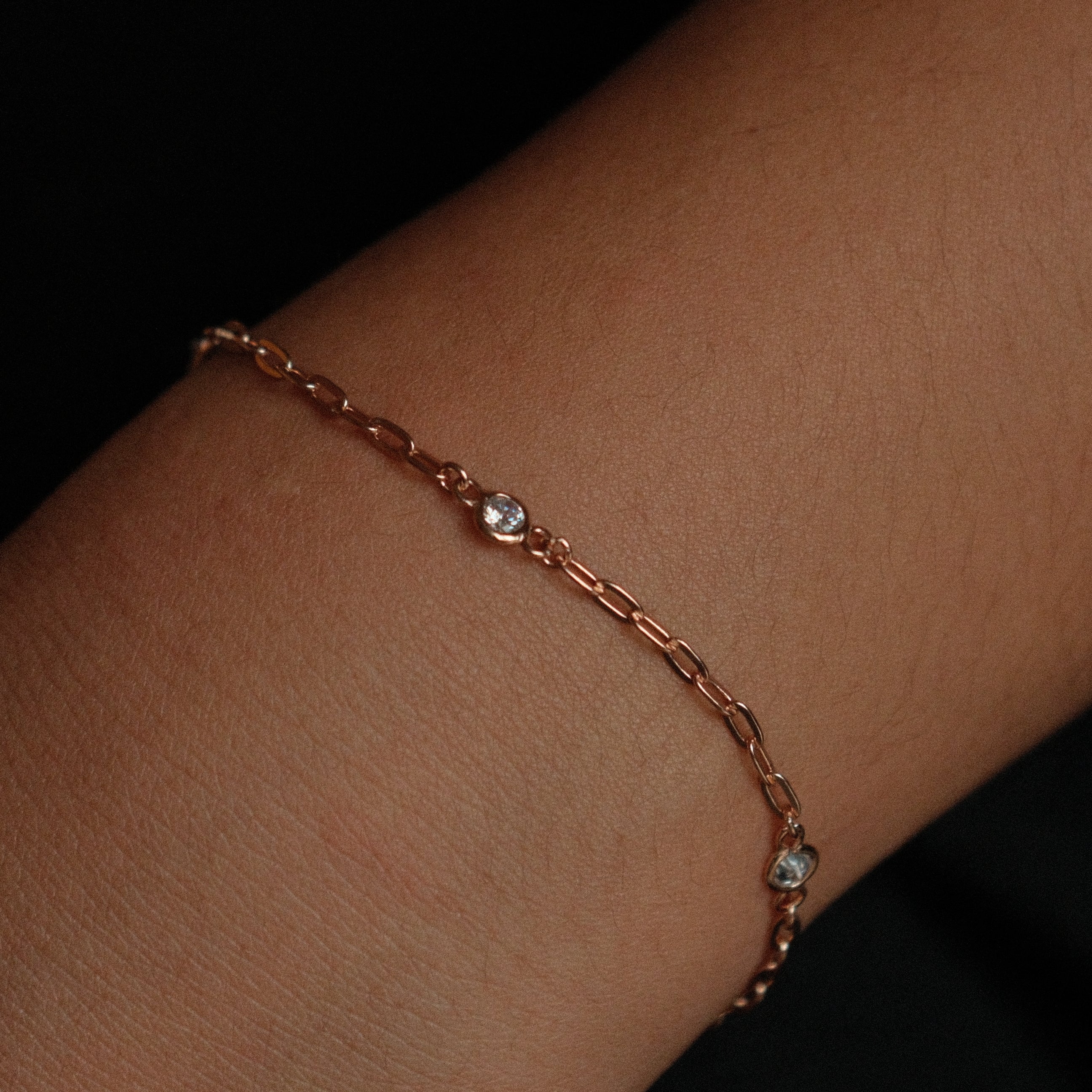 A delicate 14k rose gold–plated bracelet featuring a fine, textured chain that catches the light beautifully, simple, elegant, and perfect for everyday wear or stacking.