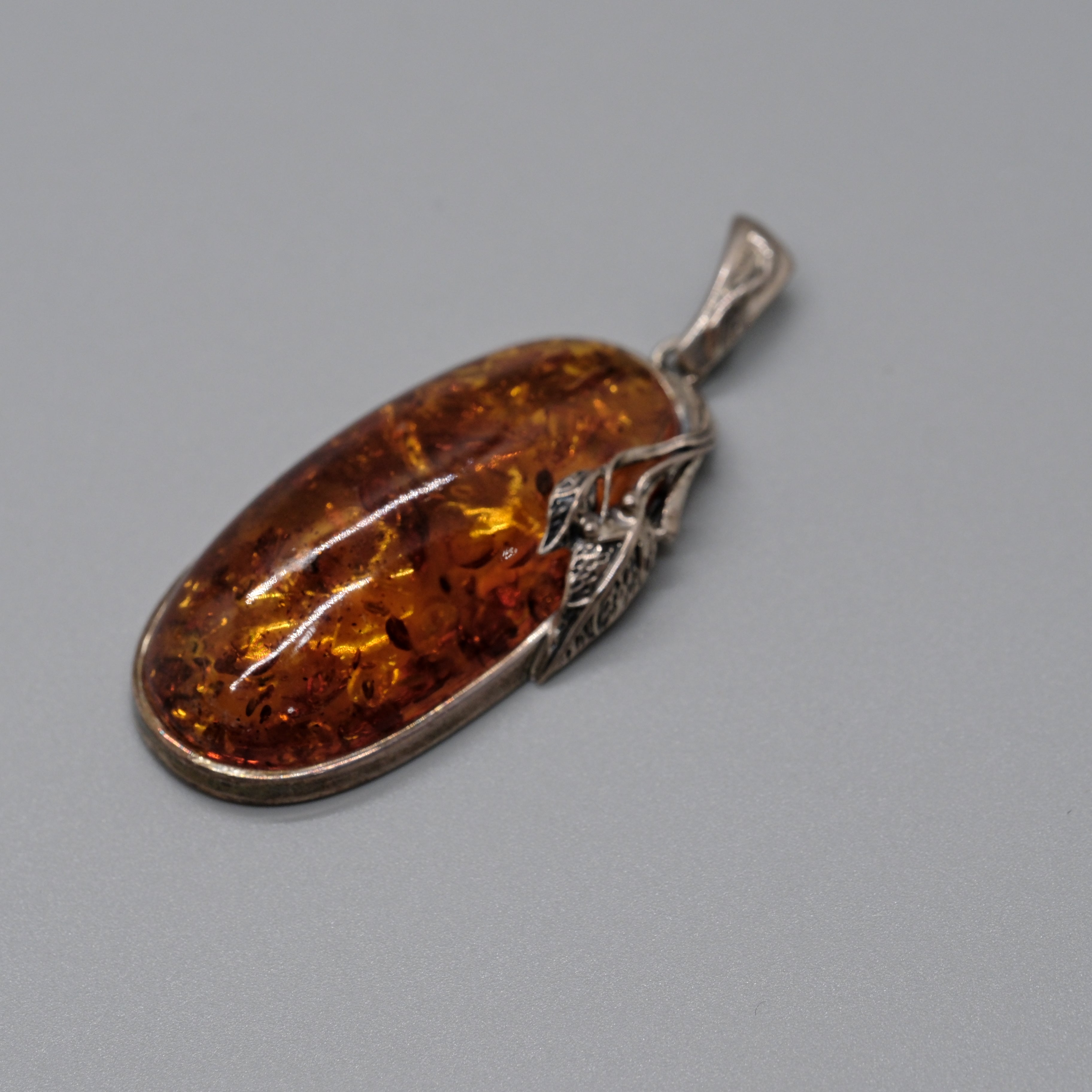 This one-of-a-kind pendant features a rich, honey-gold piece of genuine amber, wrapped in a sterling silver setting that adds just the right touch of character. The natural inclusions inside the amber catch the light beautifully, giving it a warm, glowing depth that feels almost alive. Each pendant is unique, with its own patterns and personality, making it a piece you’ll reach for when you want something meaningful and effortlessly earthy. A timeless treasure for anyone who loves natural beauty with a hint of old-world charm.