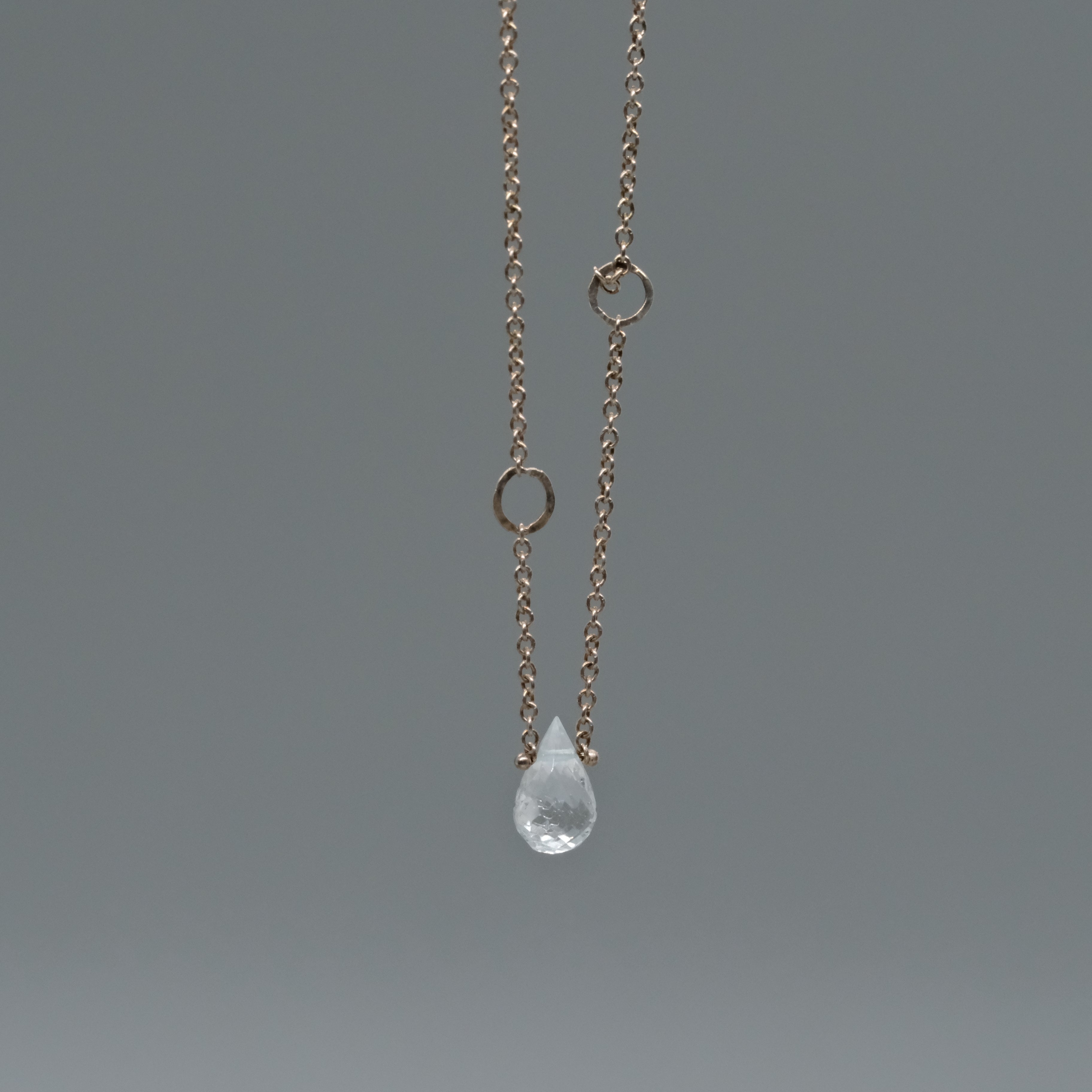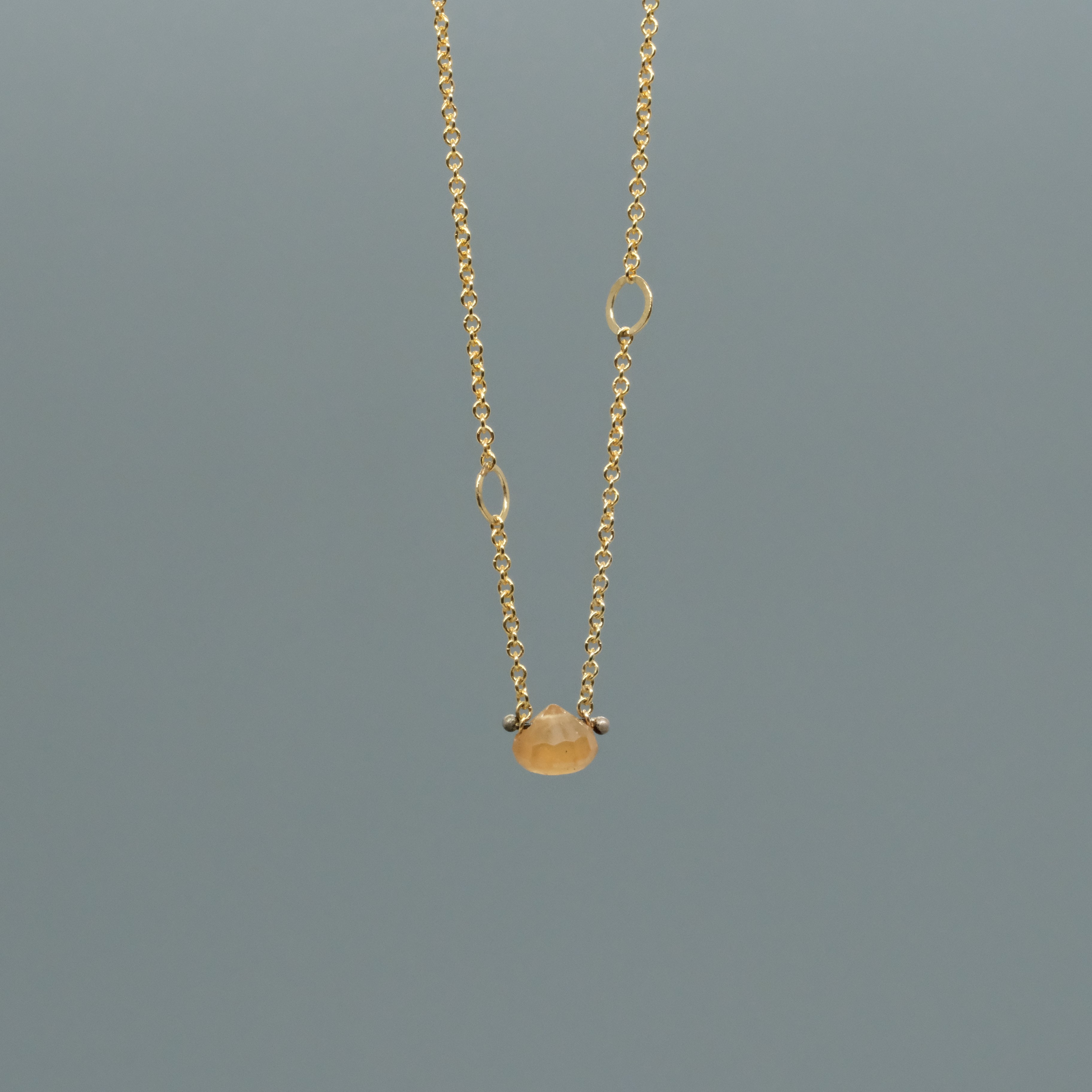 Delicate and timeless, this necklace features a single faceted gemstone set in gold vermeil, suspended on a fine gold chain. The stone’s subtle iridescence catches the light with every movement, adding a gentle, luminous touch to your neckline.