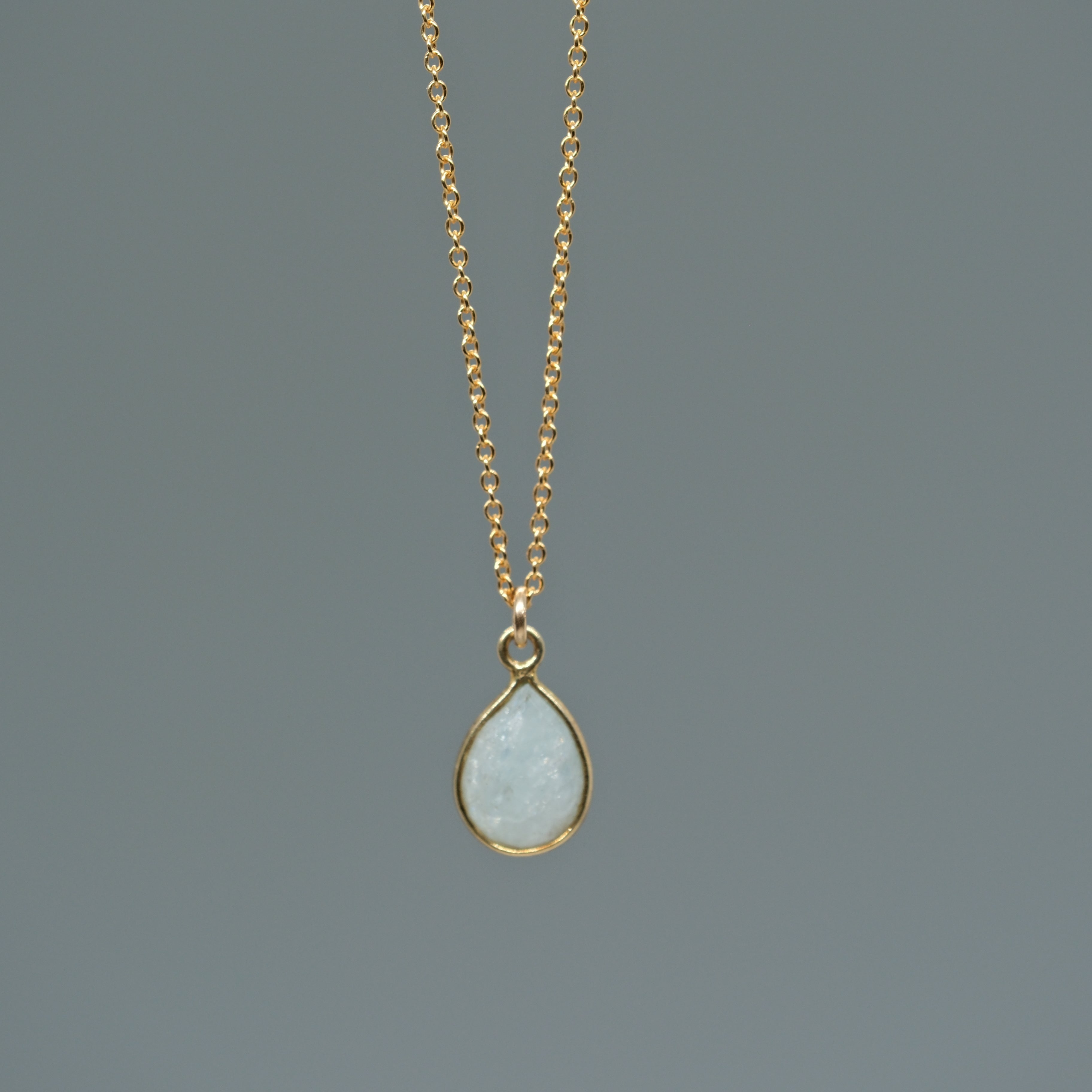 Light and enchanting, this delicate necklace features a natural aquamarine framed in a warm gold-plated bezel. The faceted teardrop gemstone reveals soft flashes of blue and iridescent glow as it catches the light, offering a subtle touch of magic to your everyday style. Suspended from a fine 14k gold-filled chain, this piece combines simplicity with a dreamy elegance that layers beautifully or stands gracefully on its own.