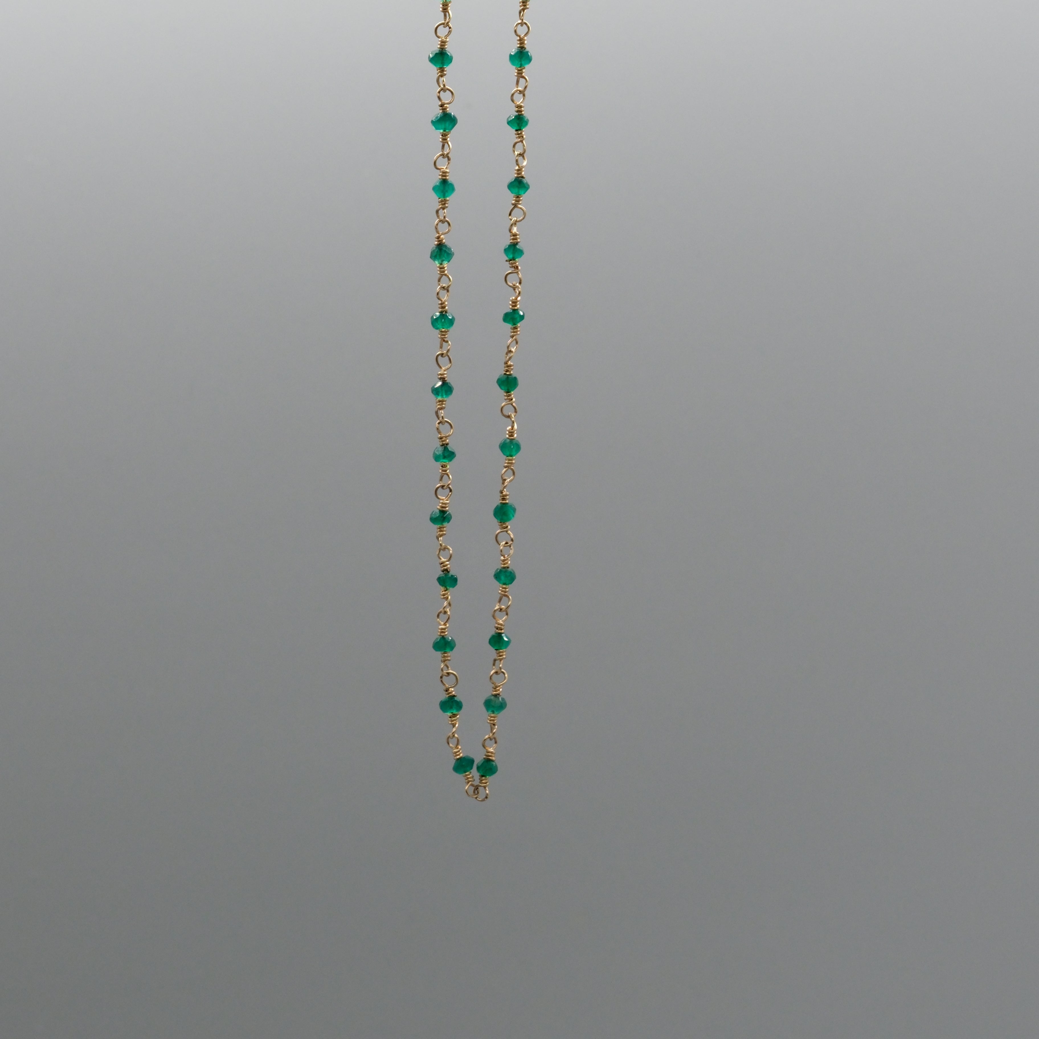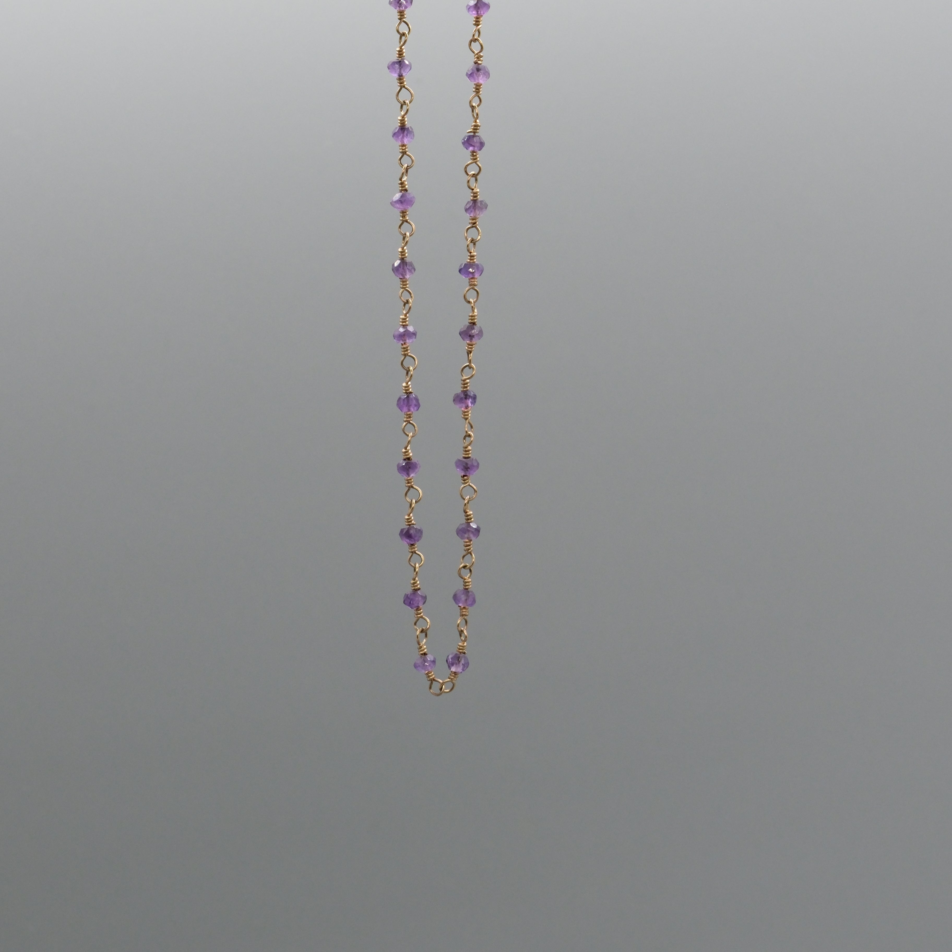 Delicate, colorful, and beautifully refined. This 16-inch necklace features a continuous strand of tiny faceted gemstones, each one hand-wrapped into a shimmering gold-filled chain. The result is a lightweight, elegant necklace that adds a subtle pop of color and sparkle to any outfit.