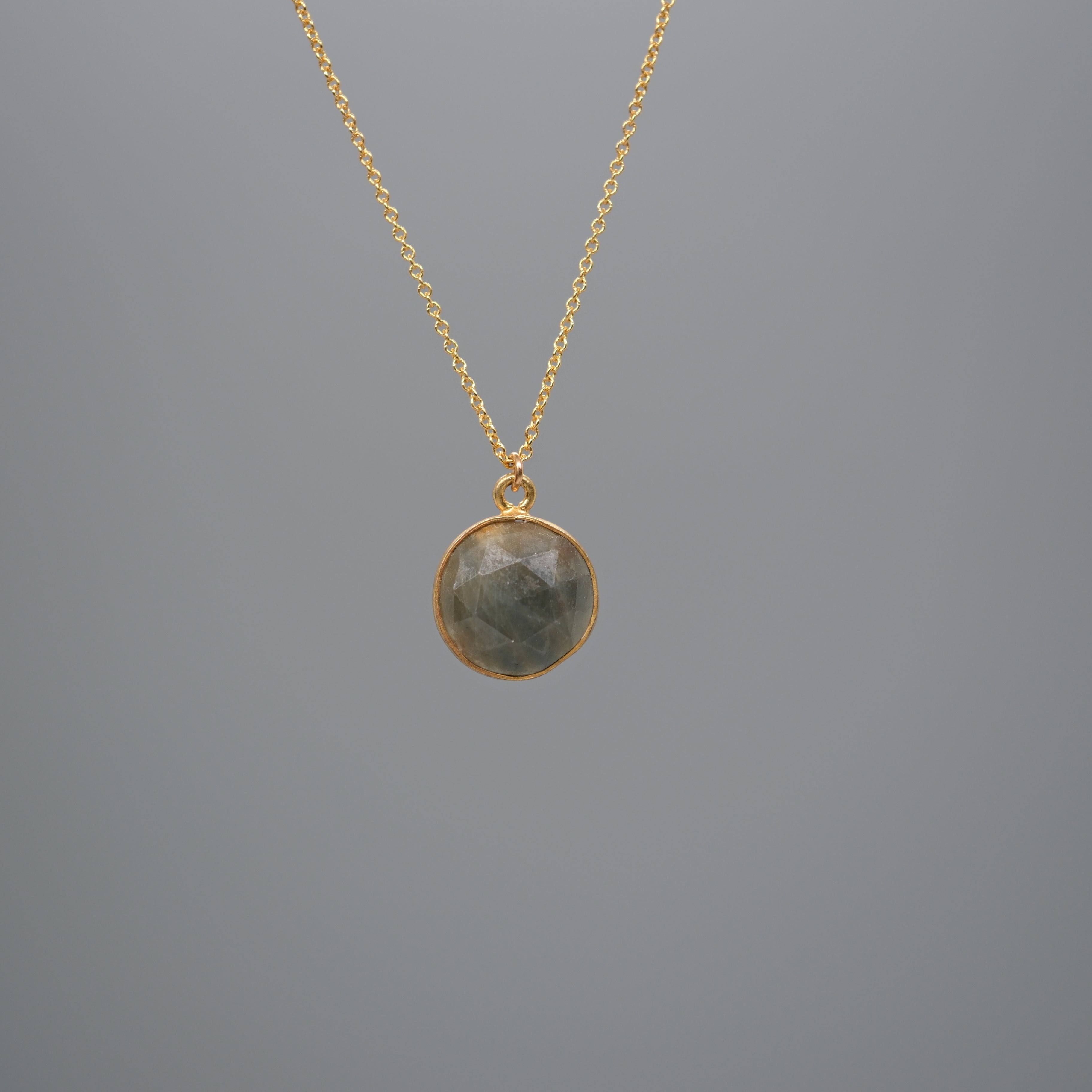 A timeless piece with subtle luxury, this necklace features a natural faceted sapphire set in gold-plated sterling silver, suspended from a 14k gold-filled chain. Each sapphire displays unique earthy tones and natural inclusions, making every necklace one of a kind.