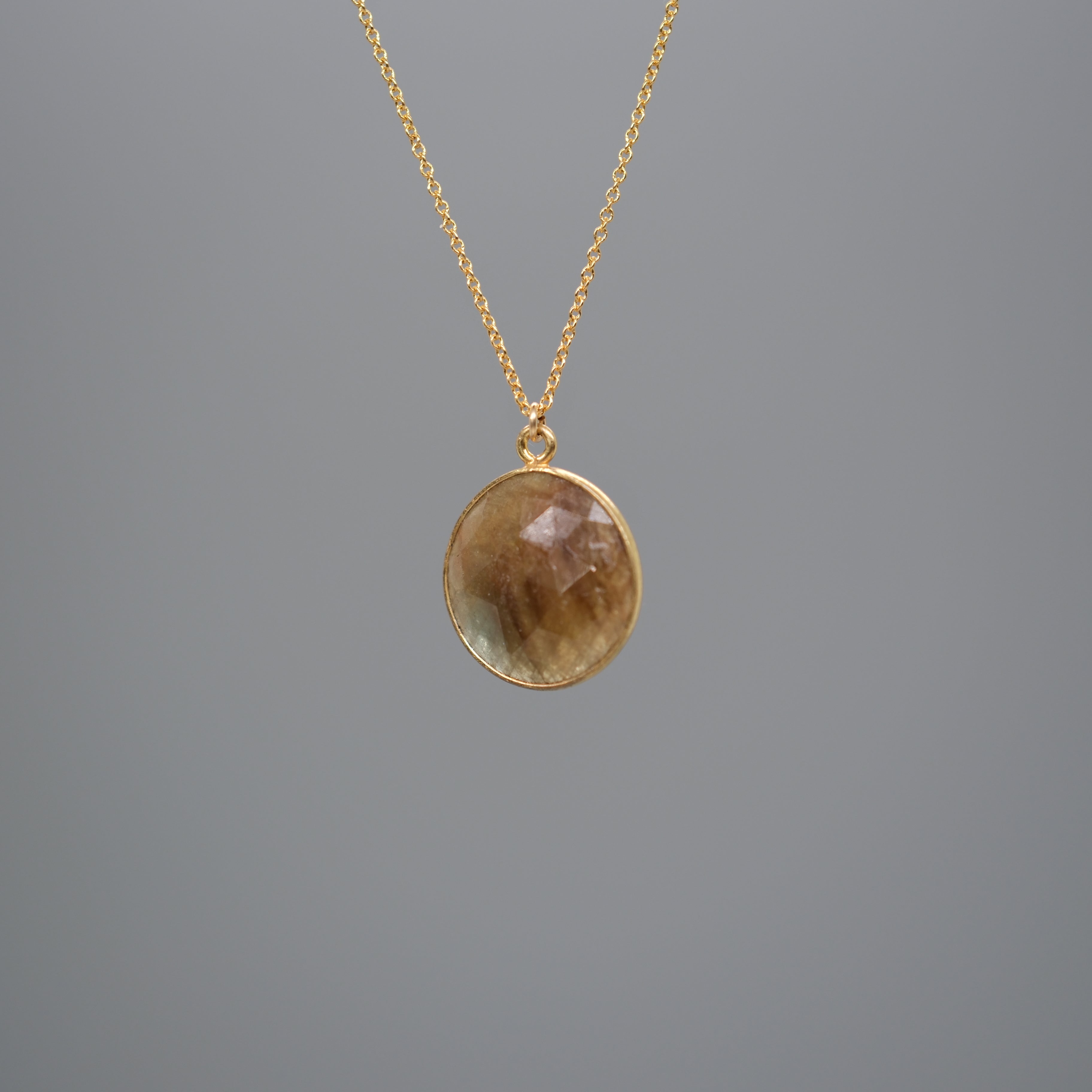 A timeless piece with subtle luxury, this necklace features a natural faceted sapphire set in gold-plated sterling silver, suspended from a 14k gold-filled chain. Each sapphire displays unique earthy tones and natural inclusions, making every necklace one of a kind.