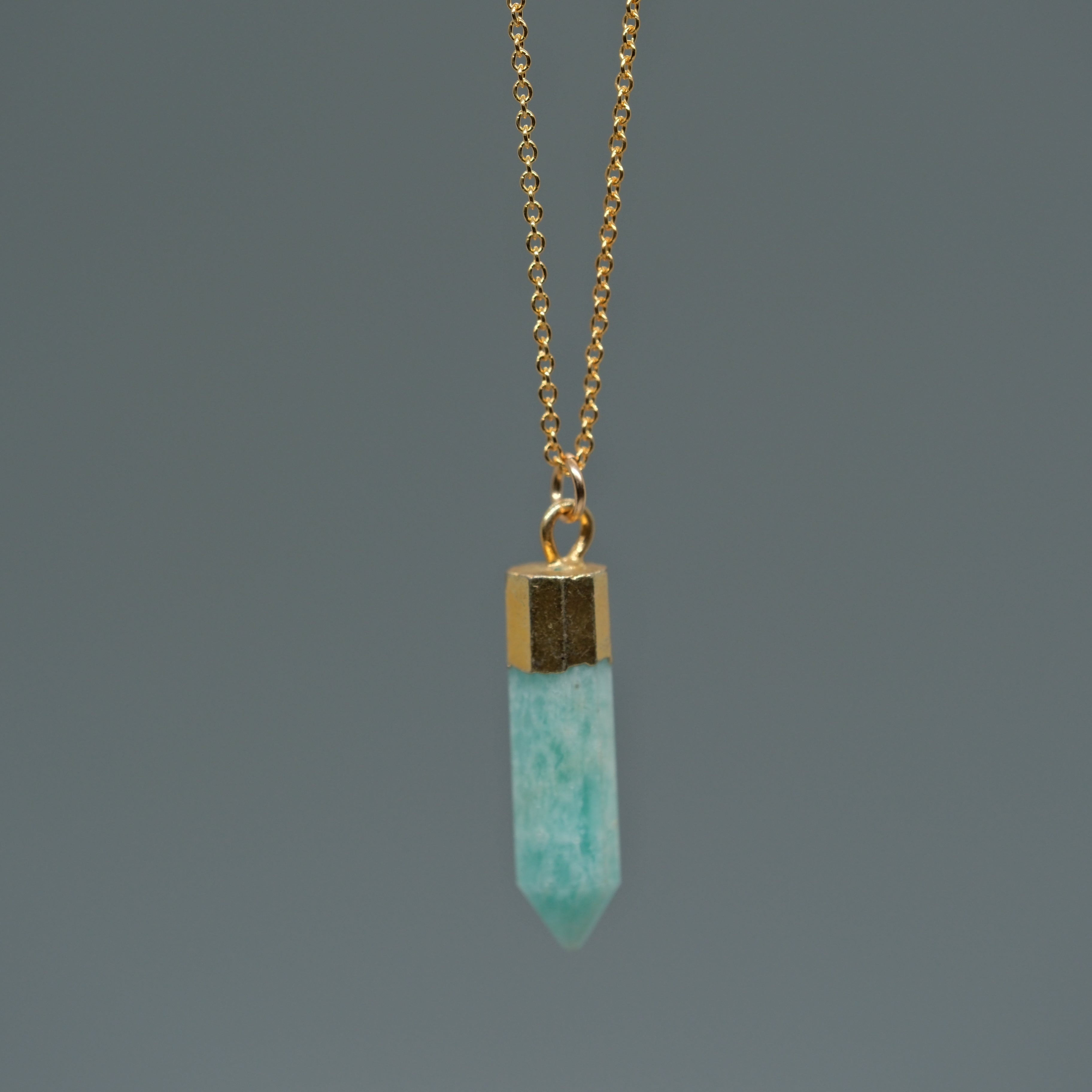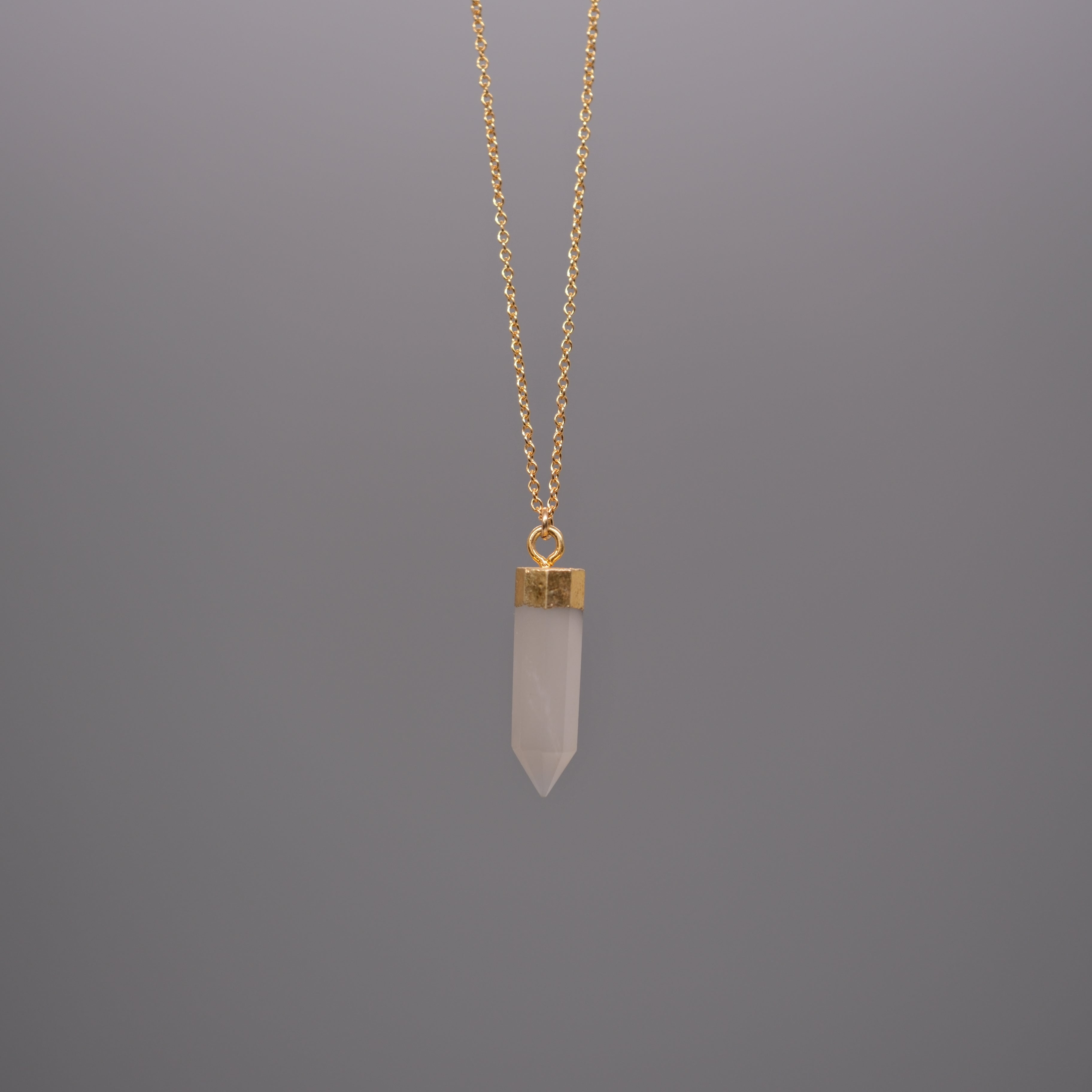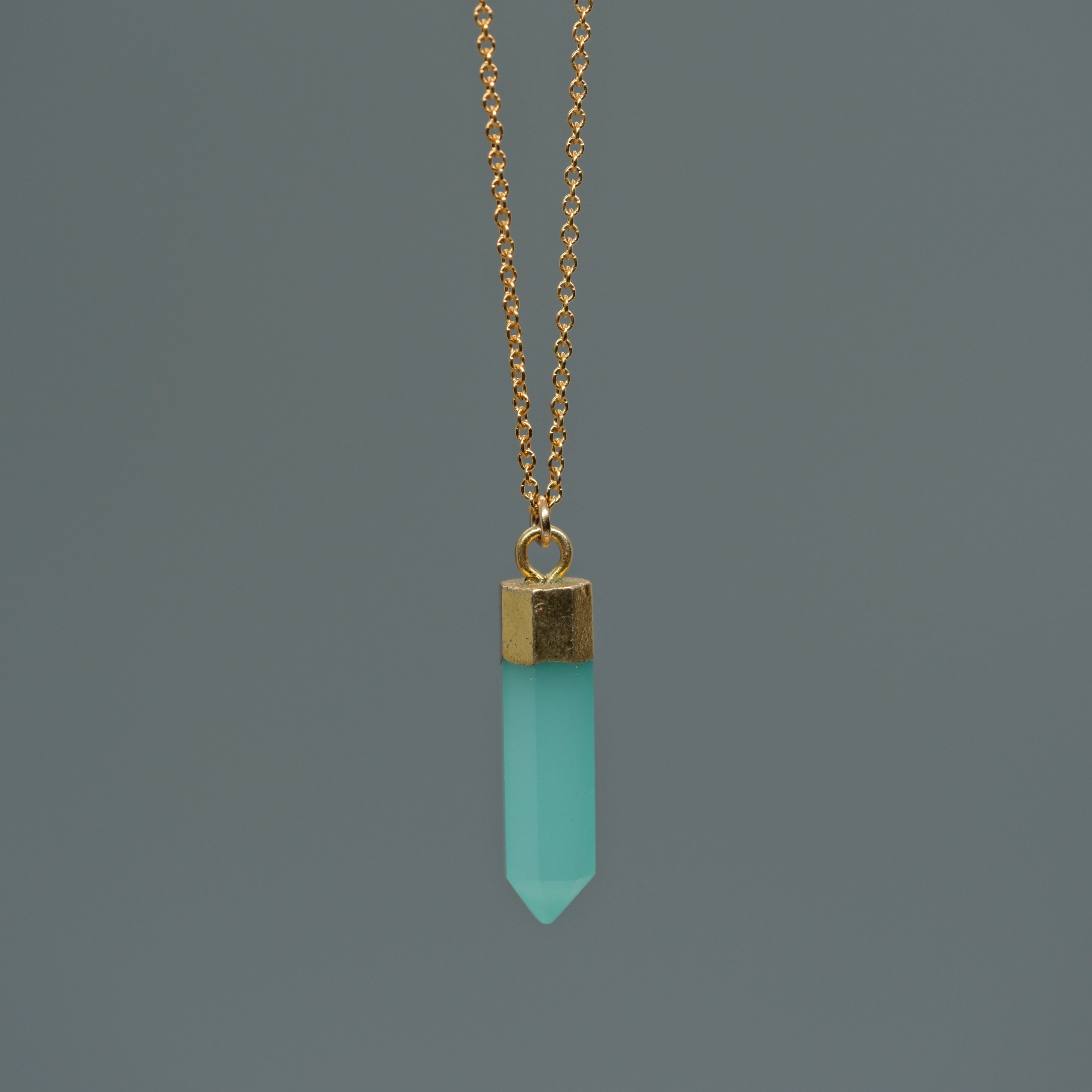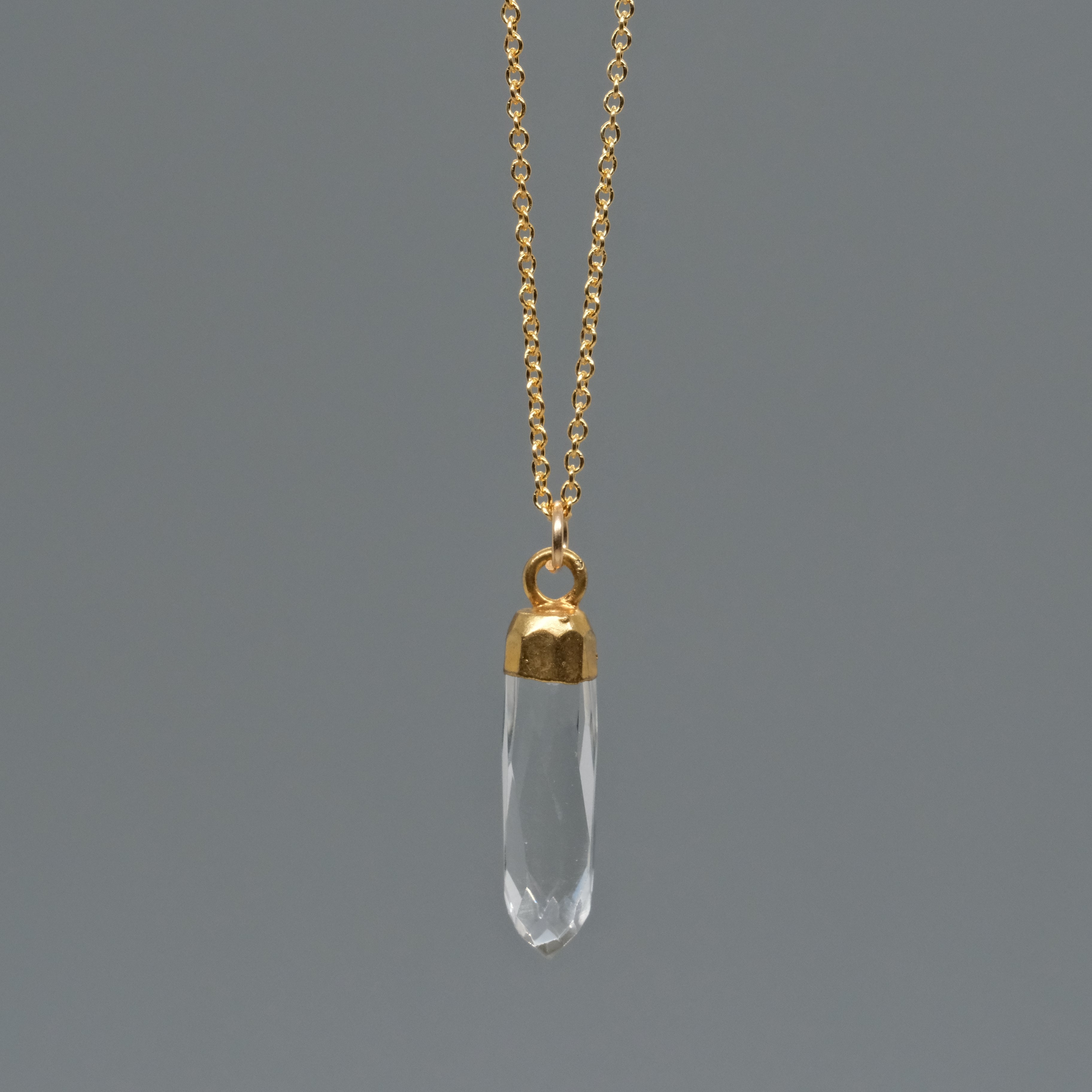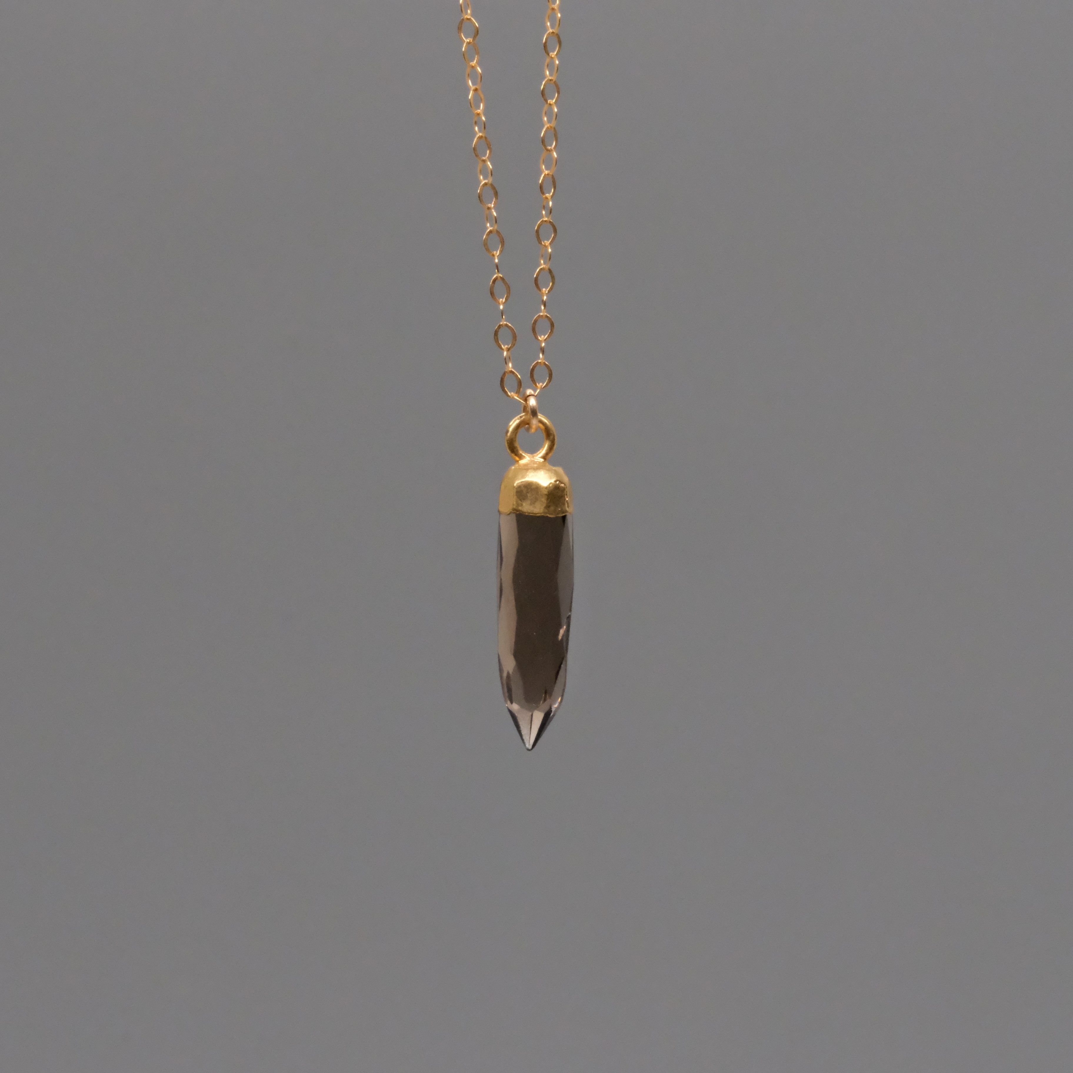 Sleek and modern, this 14k gold-filled necklace features a faceted gemstone pencil pendant capped in gold-plated sterling silver. Its clean lines and subtle shine make it the perfect statement for everyday wear.