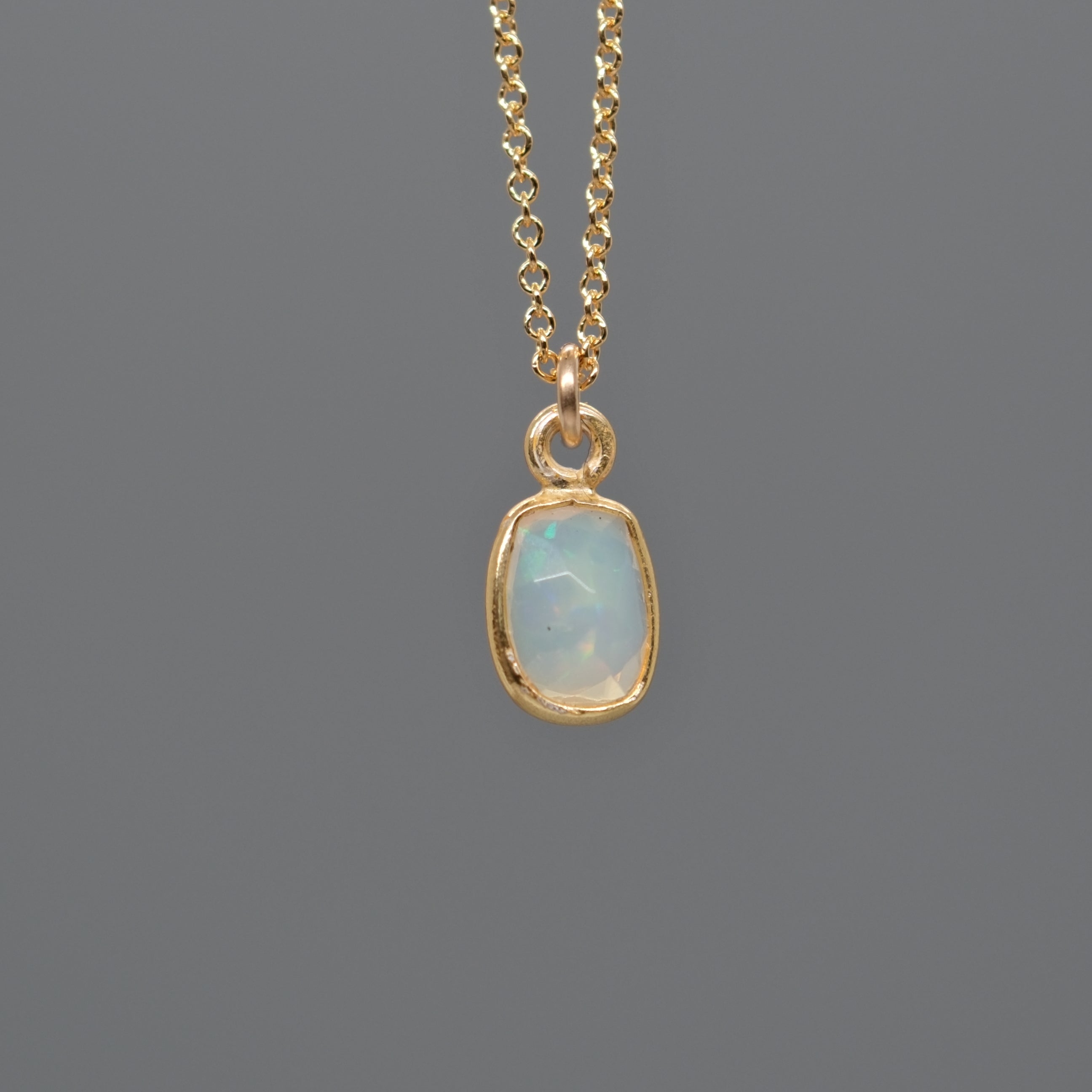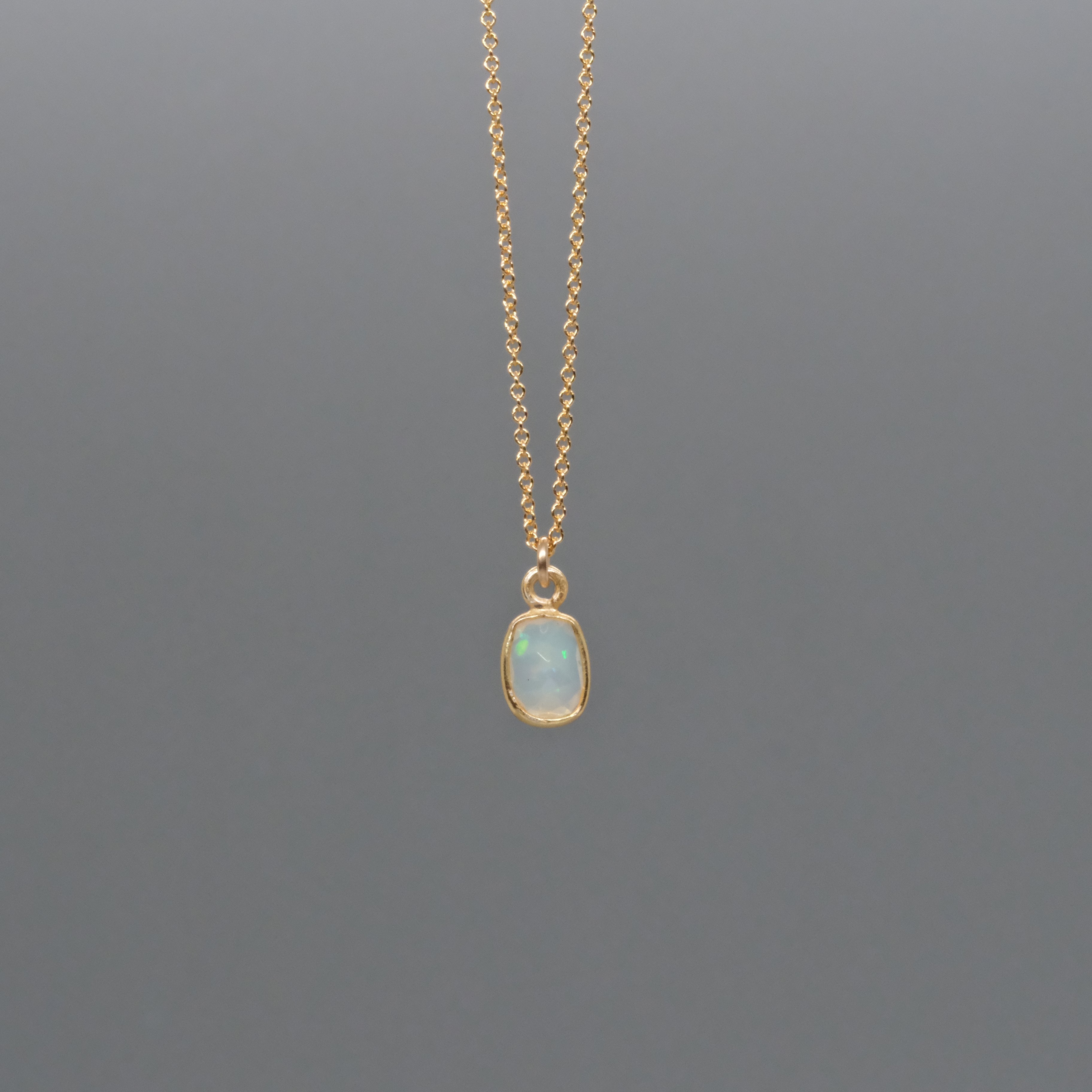 Radiant and refined, this Ethiopian opal necklace features a softly faceted cushion-cut stone that shimmers with flashes of green, pink, and blue. Set in a gold-plated sterling silver bezel and paired with an 18” gold-filled chain, it’s the perfect minimalist statement for everyday wear or layering.