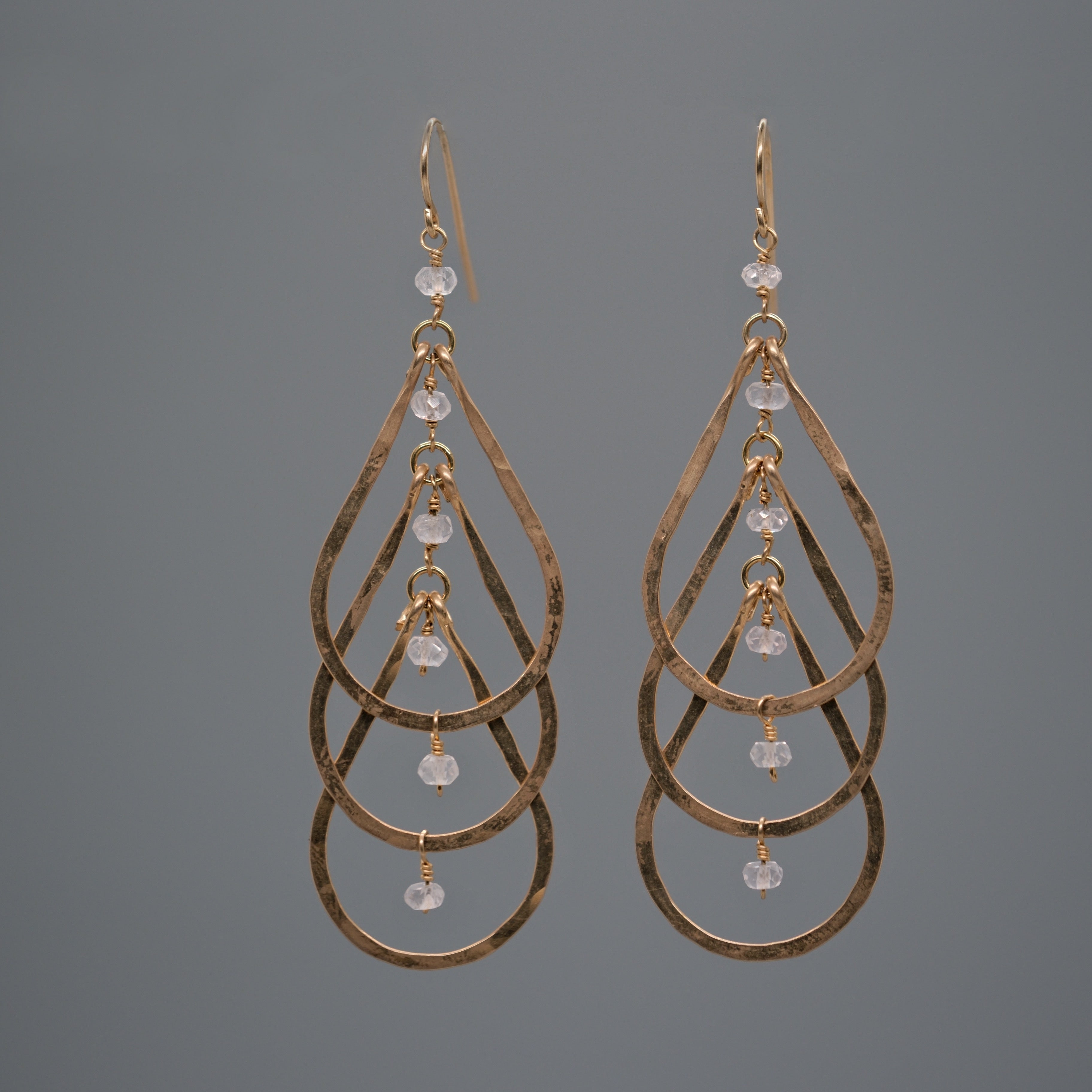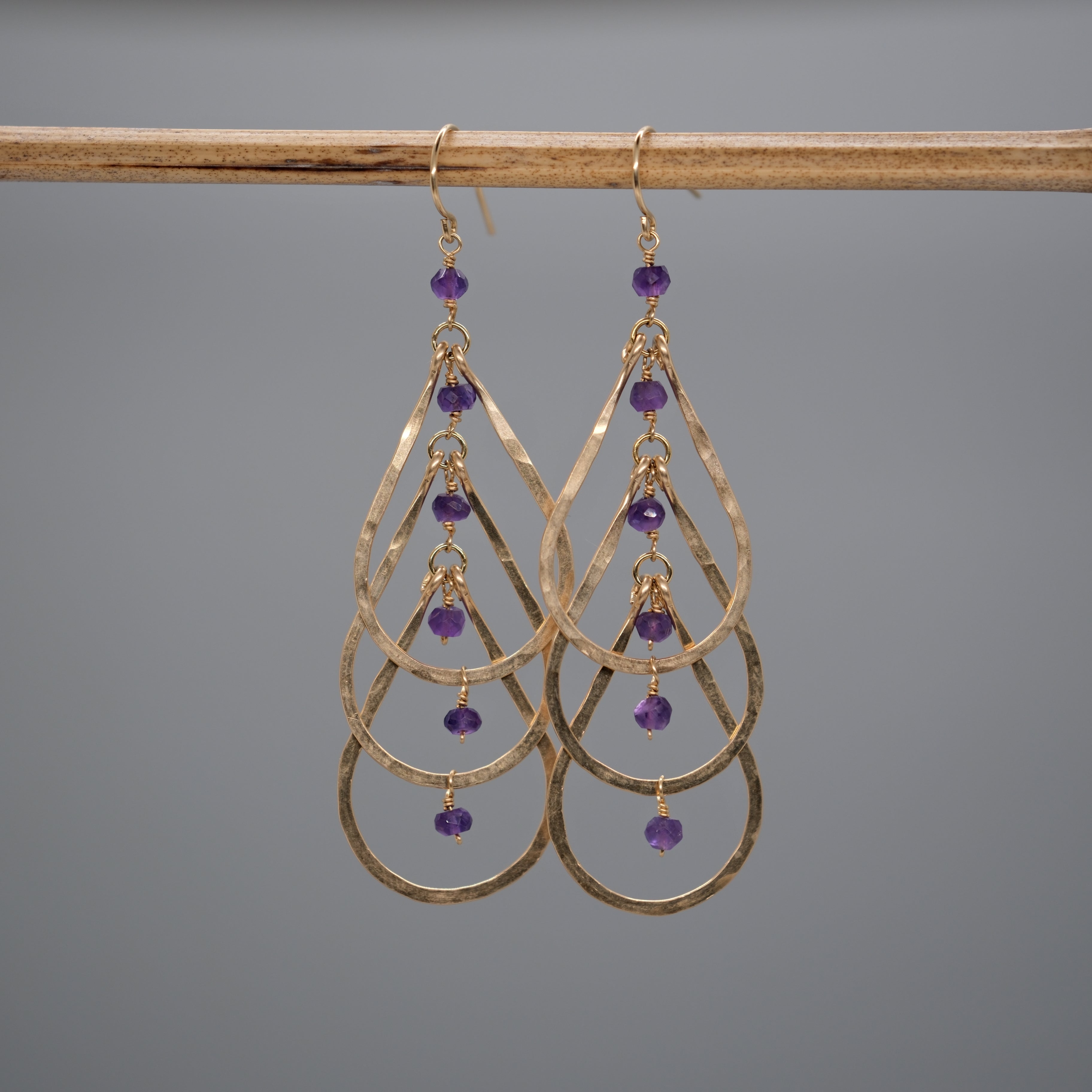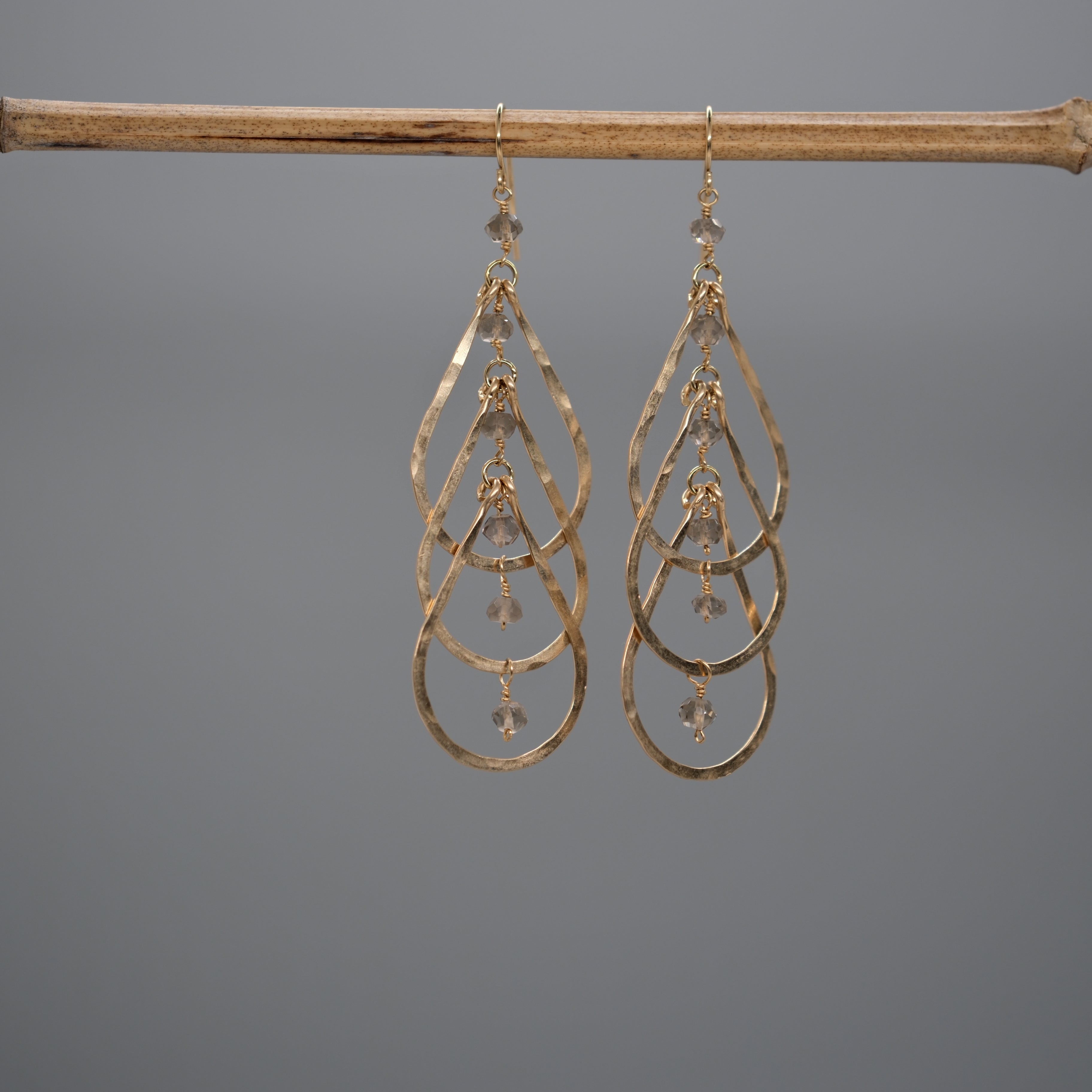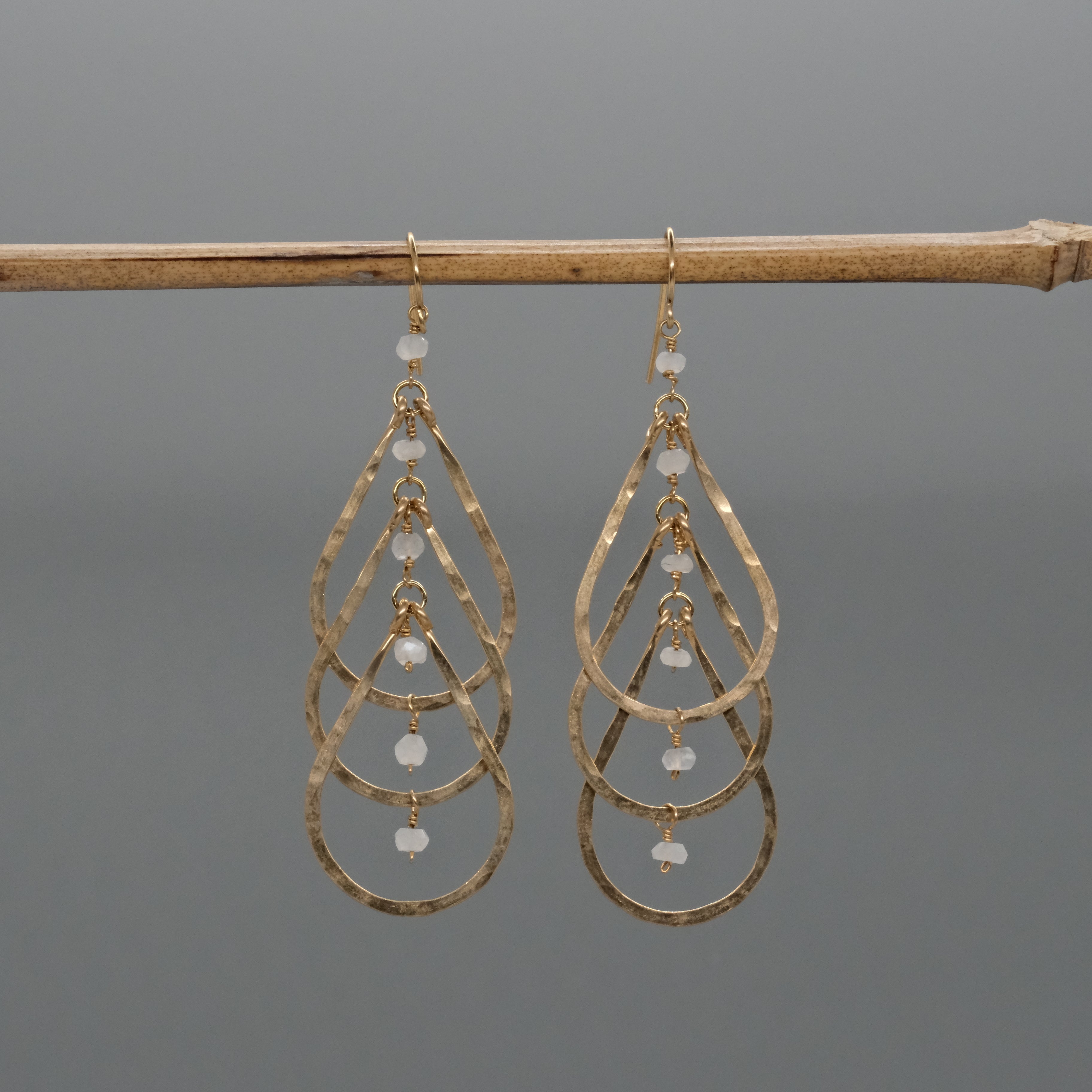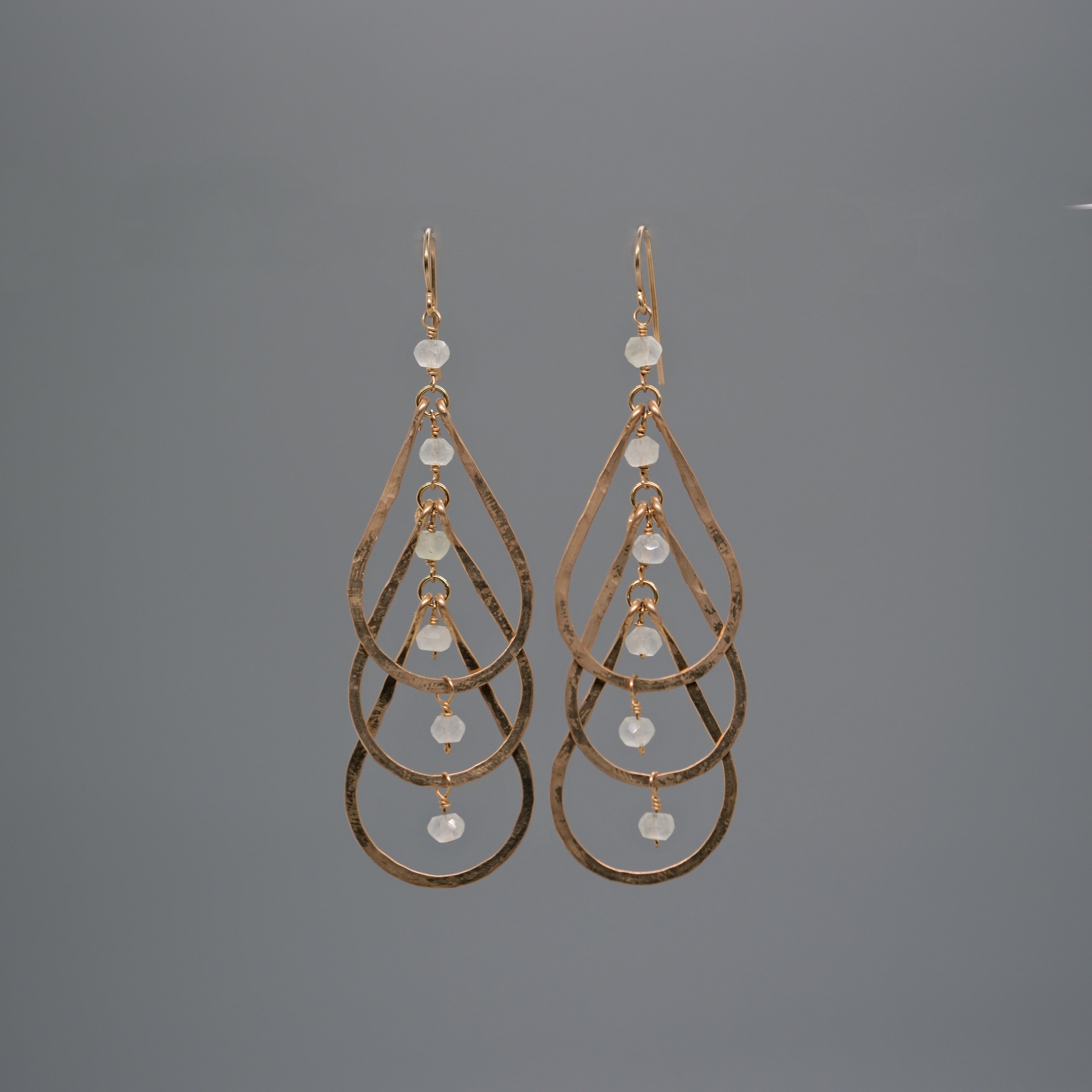 Crafted from 14k yellow gold filled metal, the Mayumi earrings come in 7 distinct gemstone varieties, each measuring 2.9” X 0.8” including the fish hook. It should be noted that, due to their natural origin, each stone is unique and may contain slight variations in color and shape.