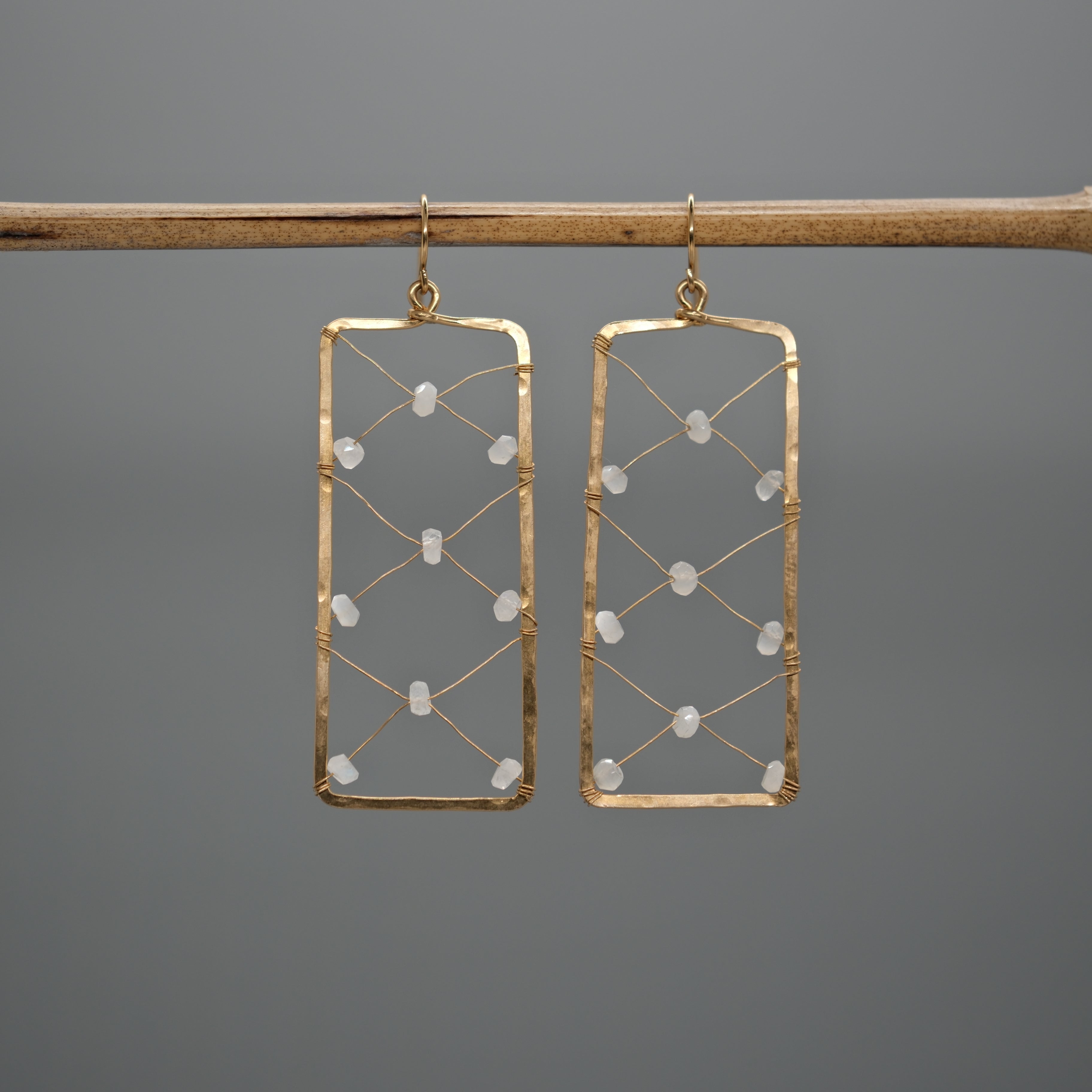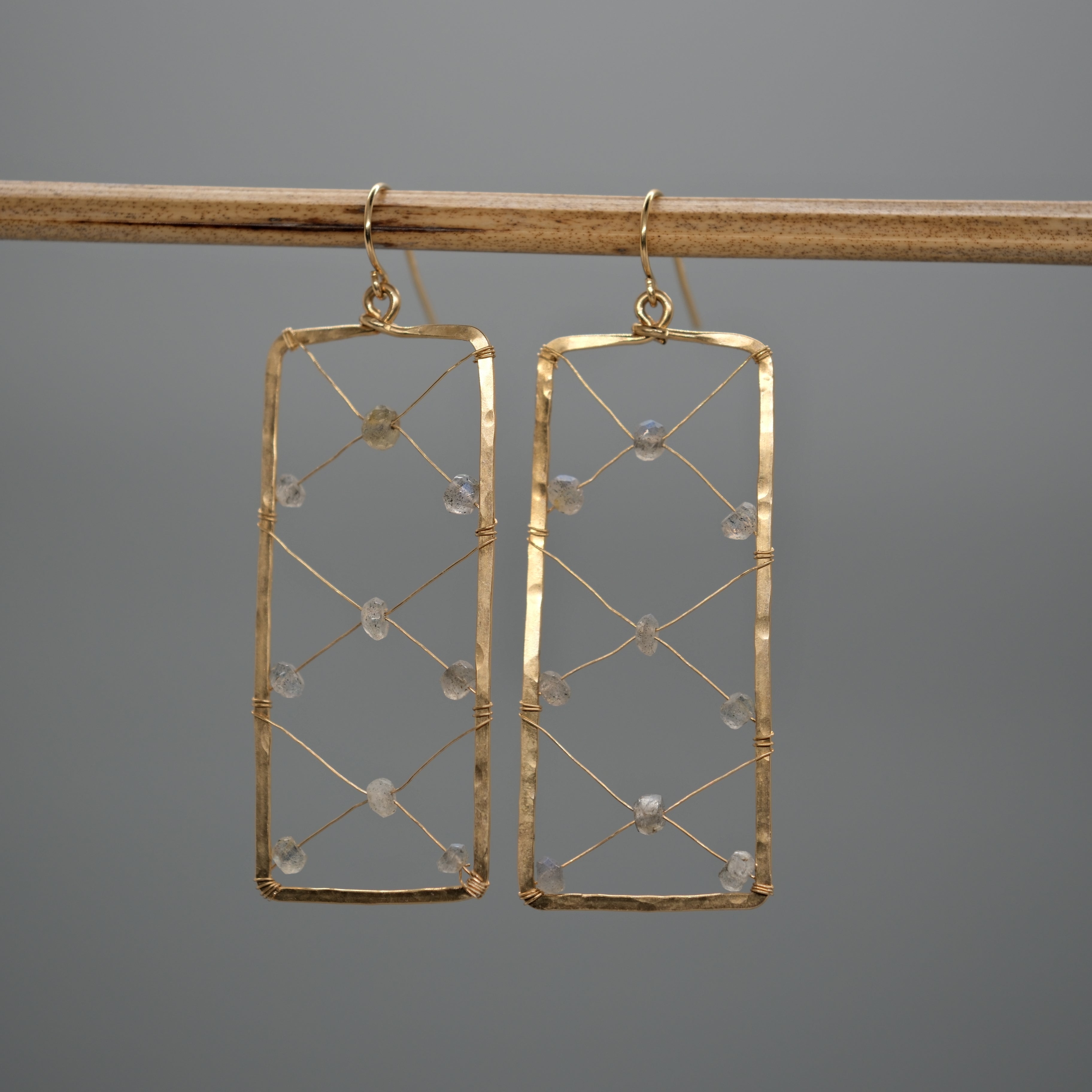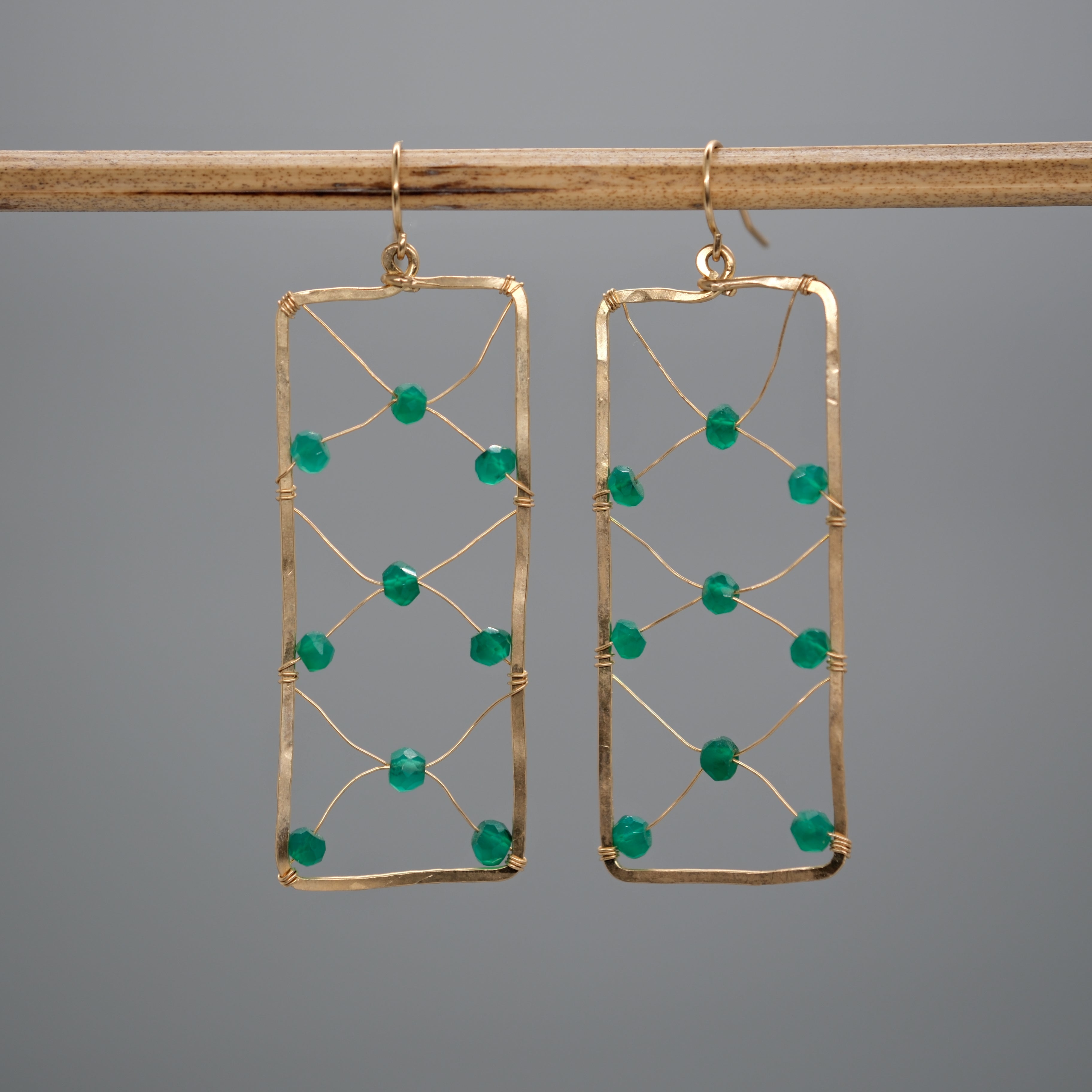 Crafted with 14k yellow gold filled, Emi earrings come in three varieties of gemstone, each measuring 2.5" X 0.8" with a fish hook closure. Due to the natural composition of each stone, color and shape may vary.