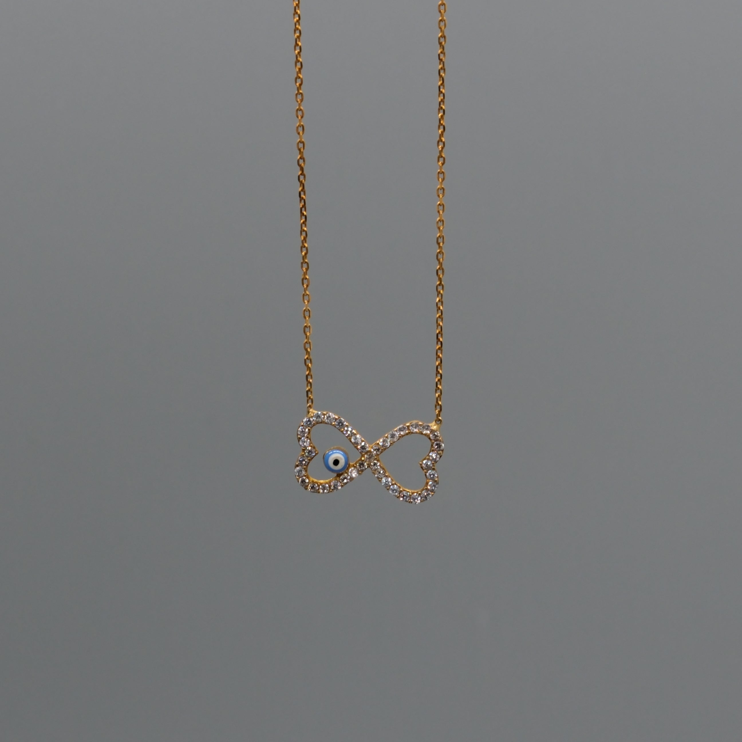 Add a touch of sparkle and protection to your everyday style with this 18-inch necklace, crafted in 14k gold–plated sterling silver. The delicate bow-shaped pendant is outlined with shimmering cubic zirconia and features a petite evil eye charm at its center for a meaningful, stylish twist. Feminine, playful, and symbolic, this necklace offers both elegance and positive energy — perfect for layering or wearing as a sweet standout piece.