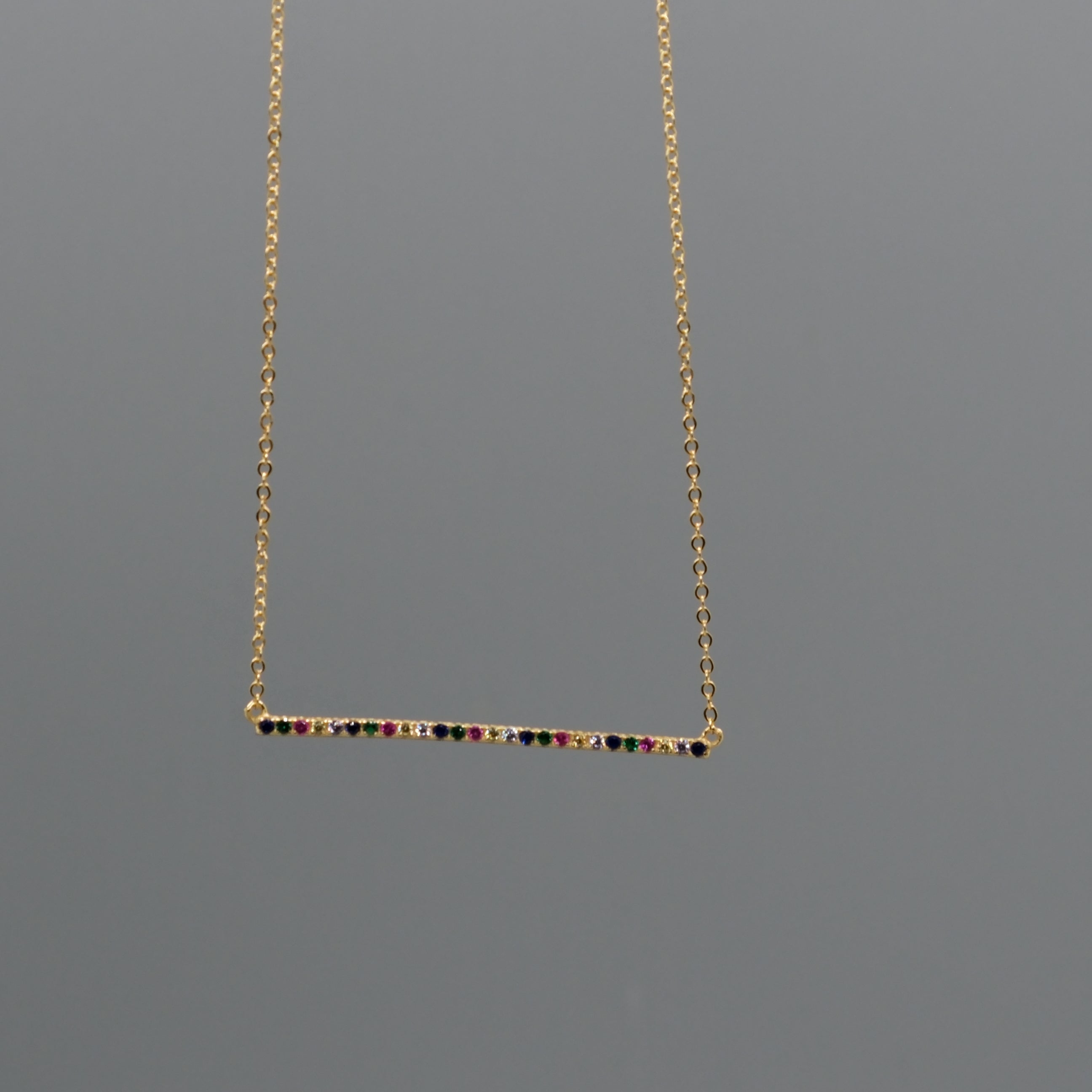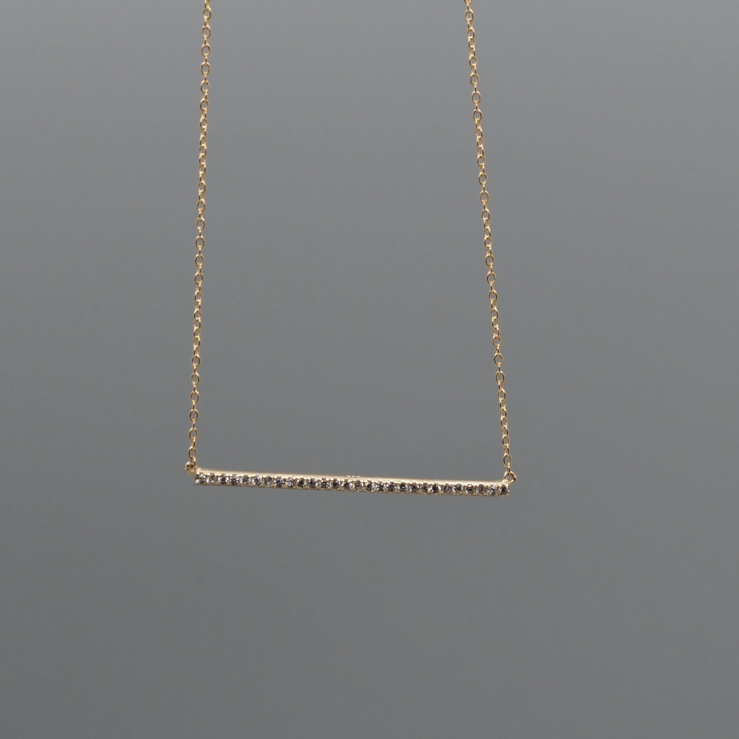 Elevate your layering game with this sleek and modern bar necklace, crafted in 14k gold–plated sterling silver and lined with sparkling cubic zirconia. The slim horizontal bar catches the light beautifully, offering a refined touch that’s perfect for both everyday wear and special occasions. Suspended on an 18-inch chain, it sits gracefully along the neckline for a clean, minimalist look. Available in clear, black, and multi-stone designs, this versatile piece adds just the right amount of sparkle to any style.