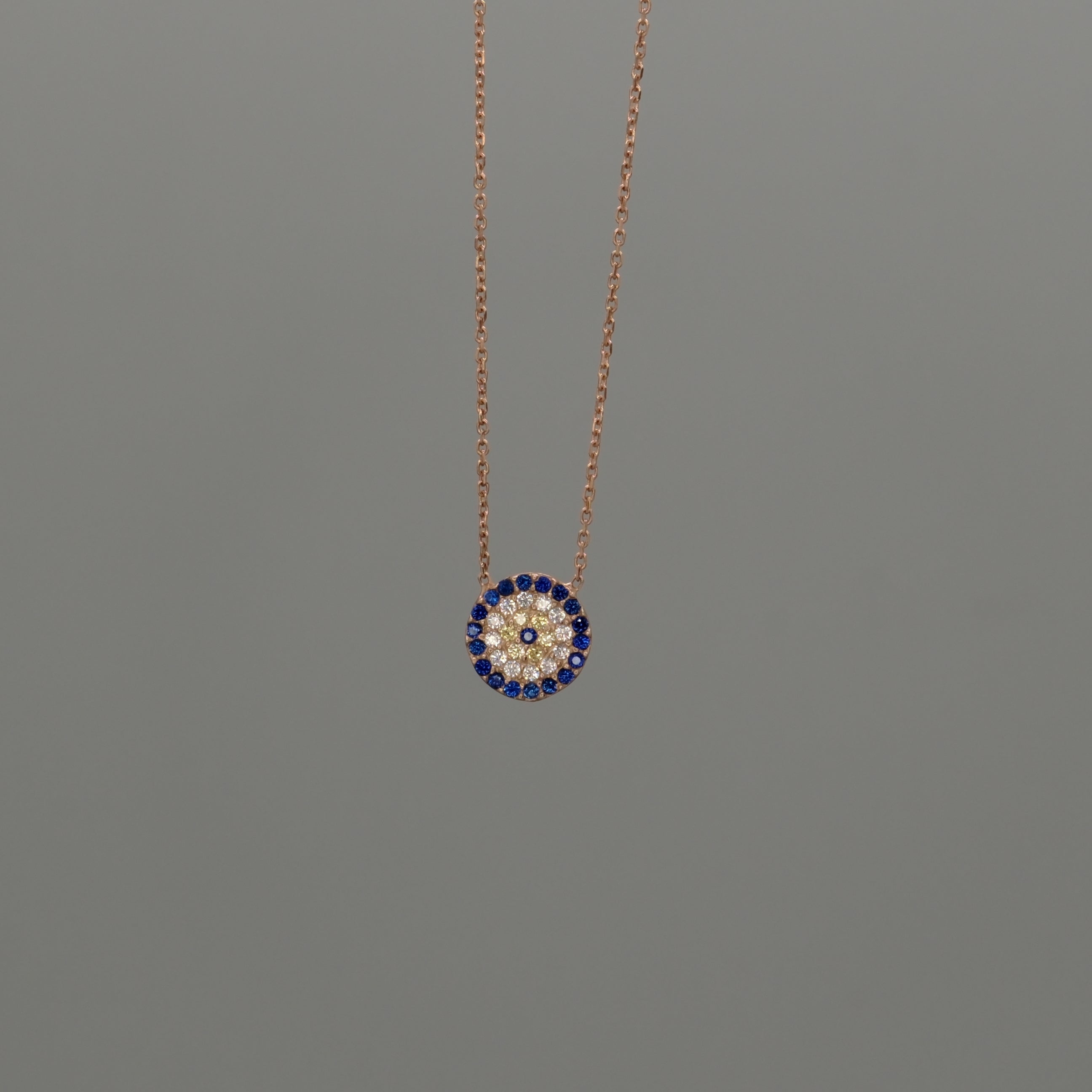 Add a touch of sparkle and protection with this delicate evil eye necklace, crafted in 14k gold–plated sterling silver and set with shimmering cubic zirconia. The 18-inch chain holds a dainty round pendant featuring a classic blue evil eye center surrounded by a halo of CZs for extra brilliance. Symbolizing protection and good energy, this piece is perfect for everyday wear and layers beautifully with other necklaces. A timeless charm with a modern, elegant finish.