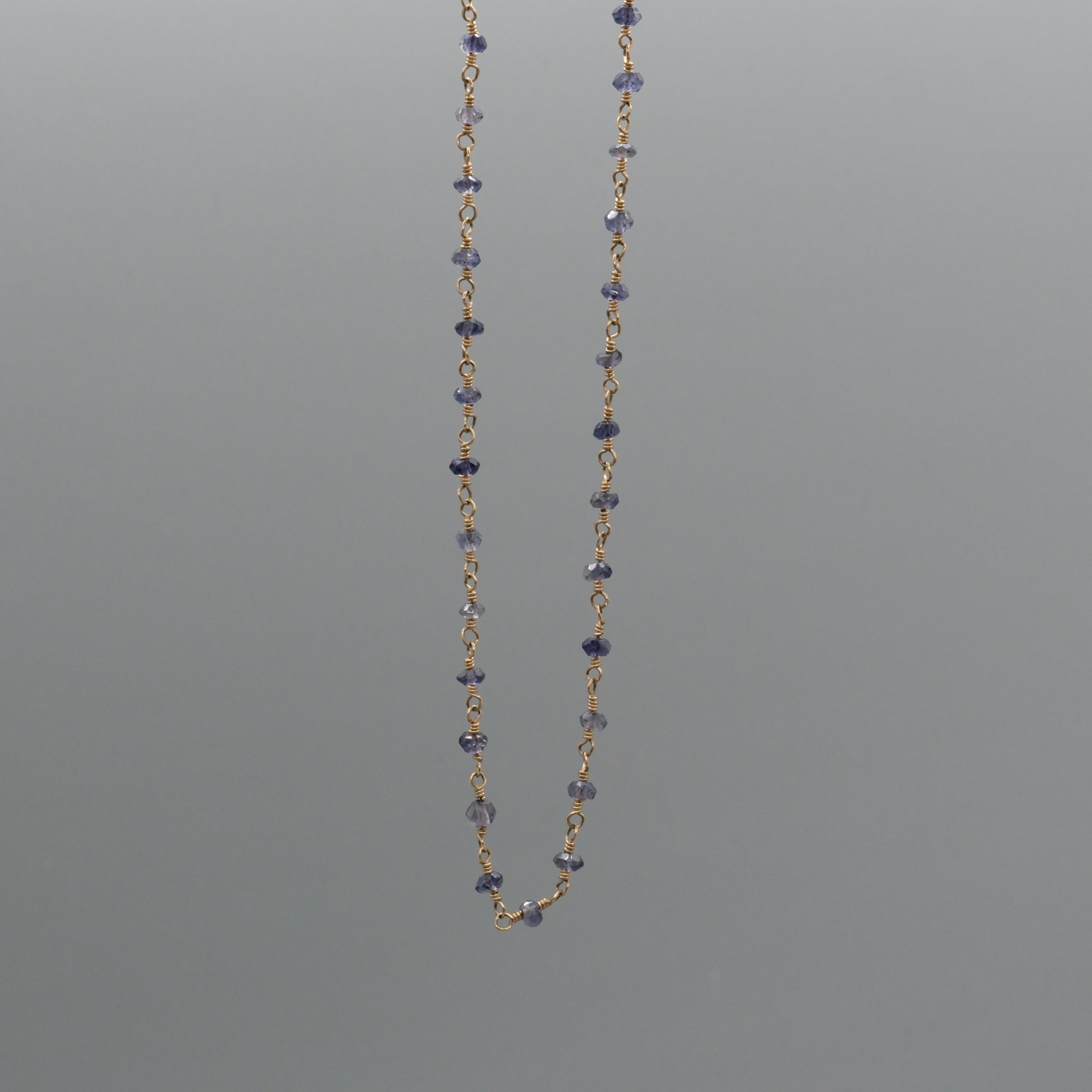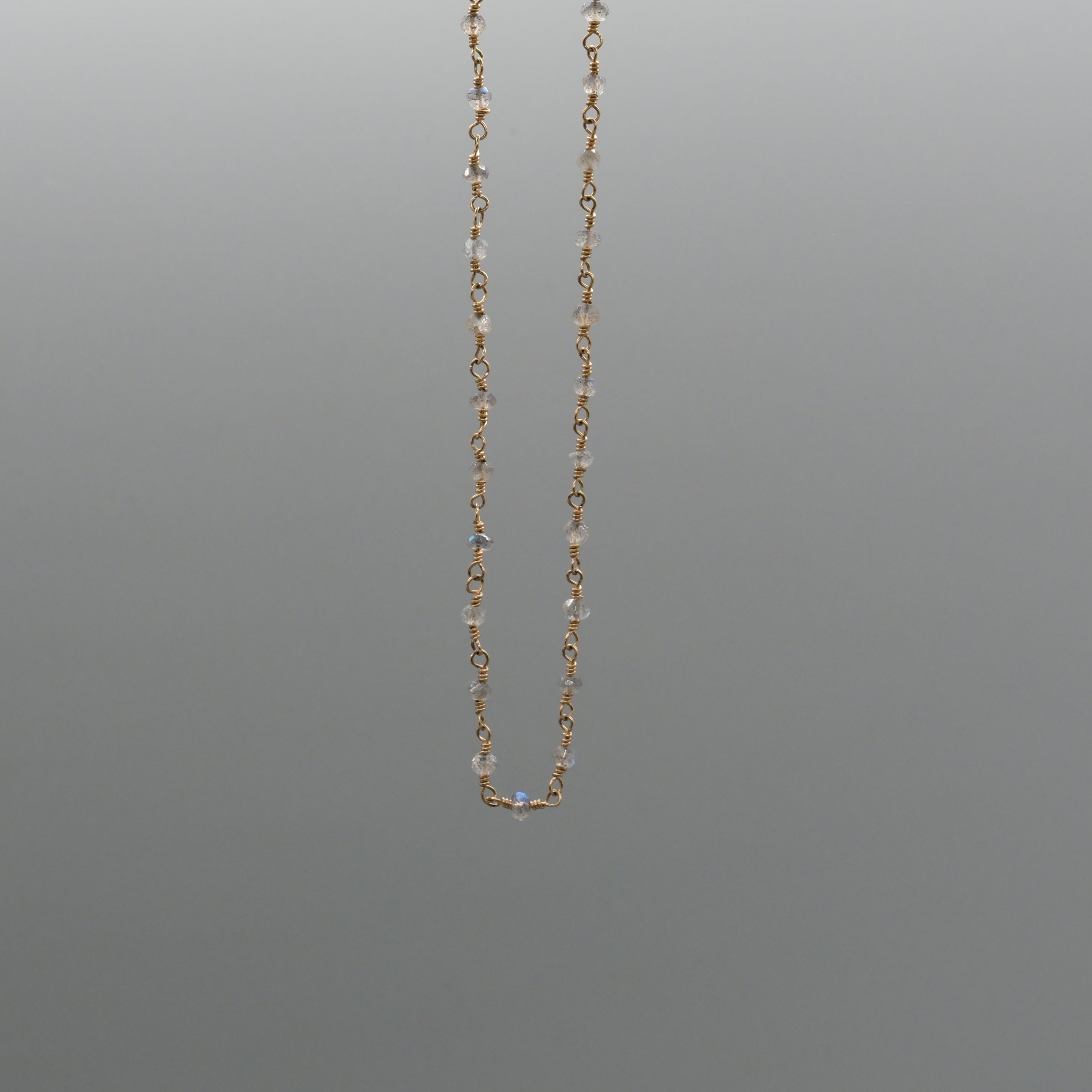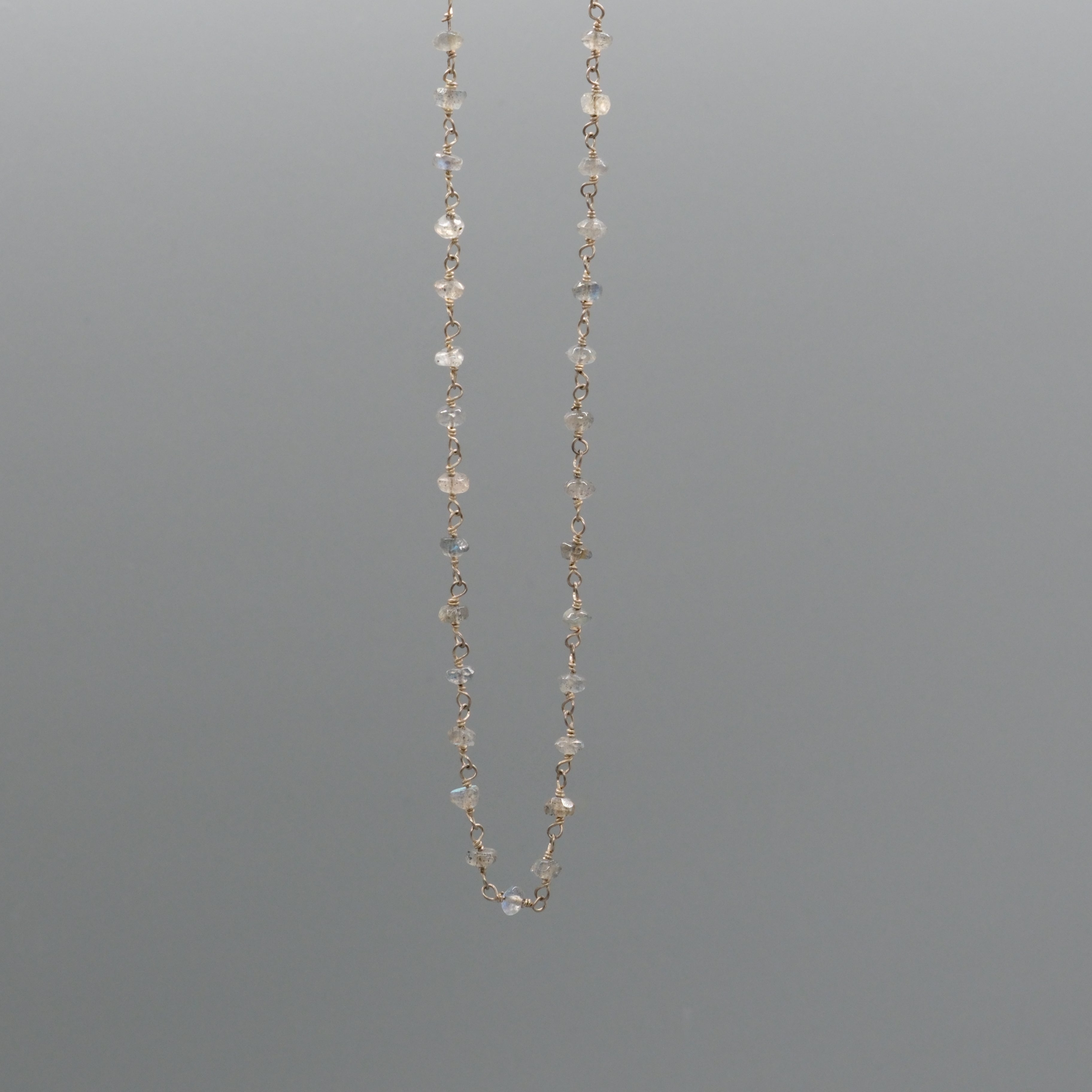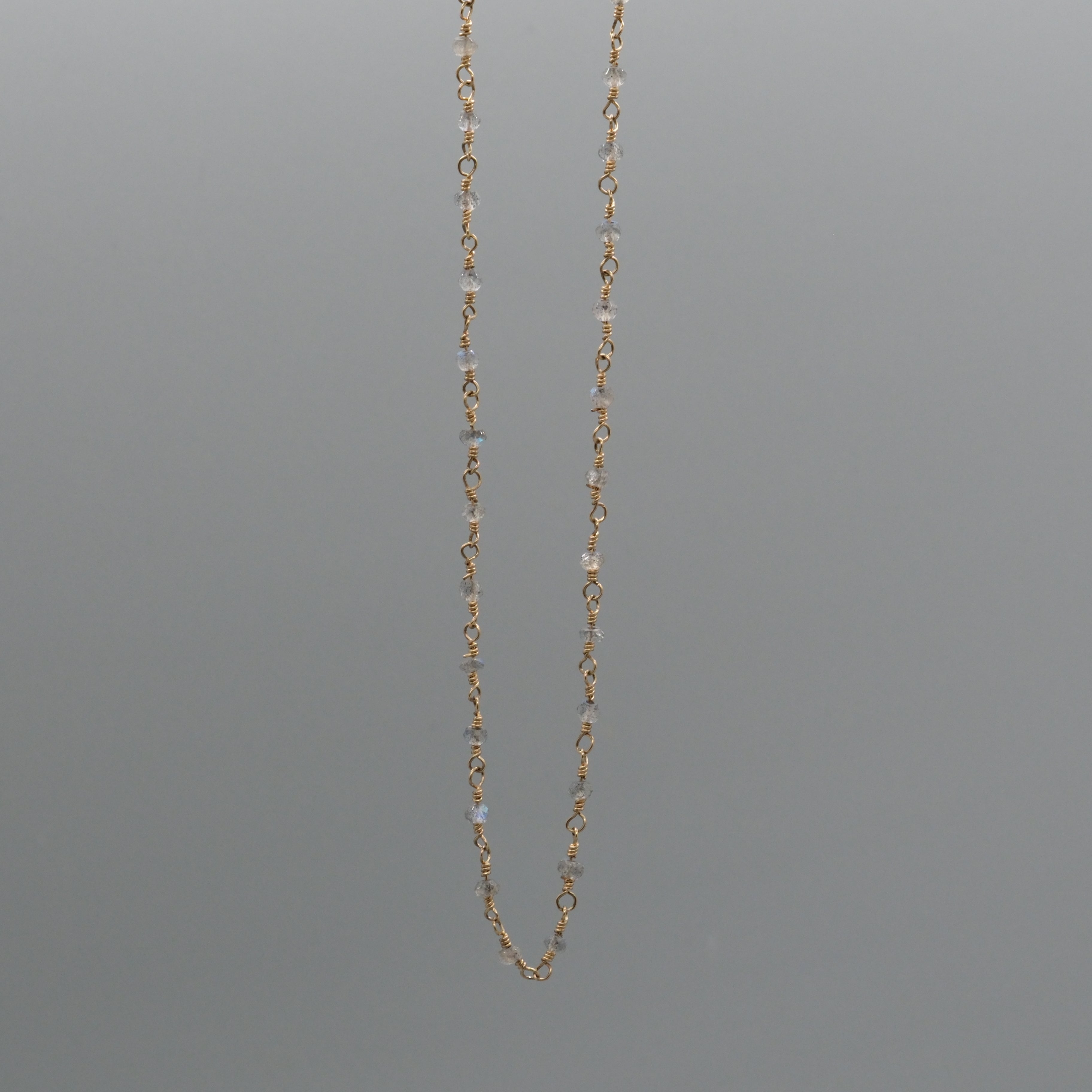 Delicate, colorful, and beautifully refined. This 16-inch necklace features a continuous strand of tiny faceted gemstones, each one hand-wrapped into a shimmering gold-filled chain. The result is a lightweight, elegant necklace that adds a subtle pop of color and sparkle to any outfit.