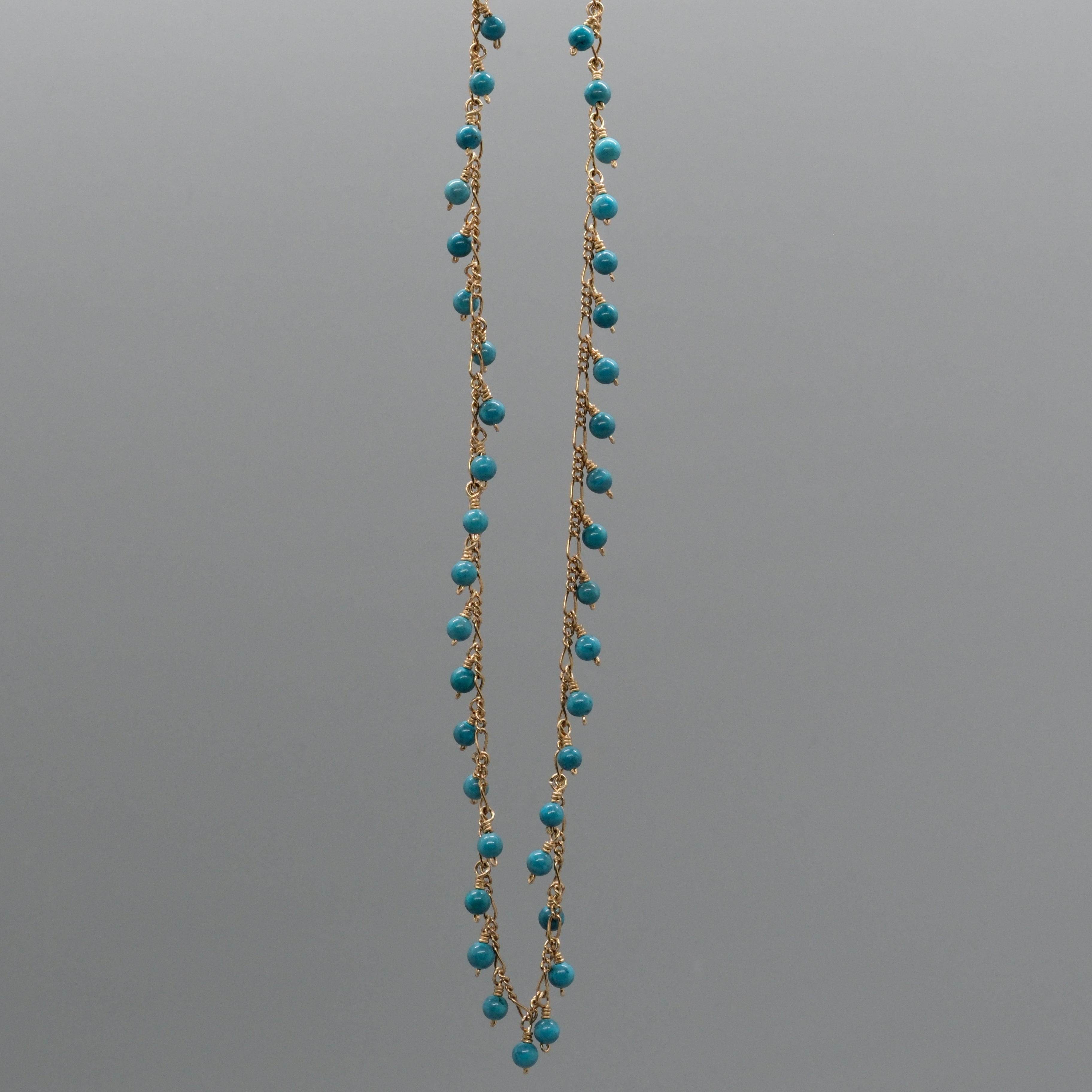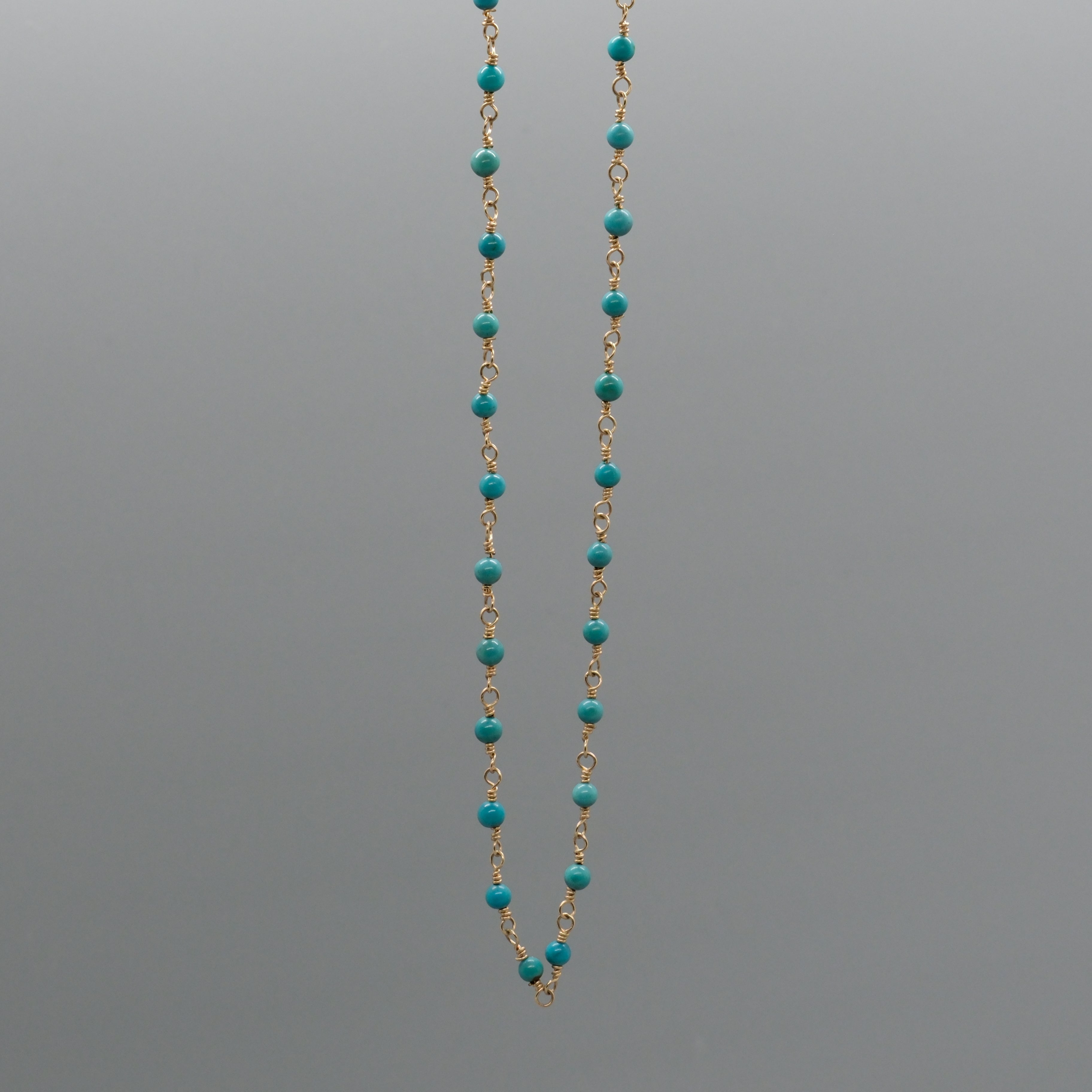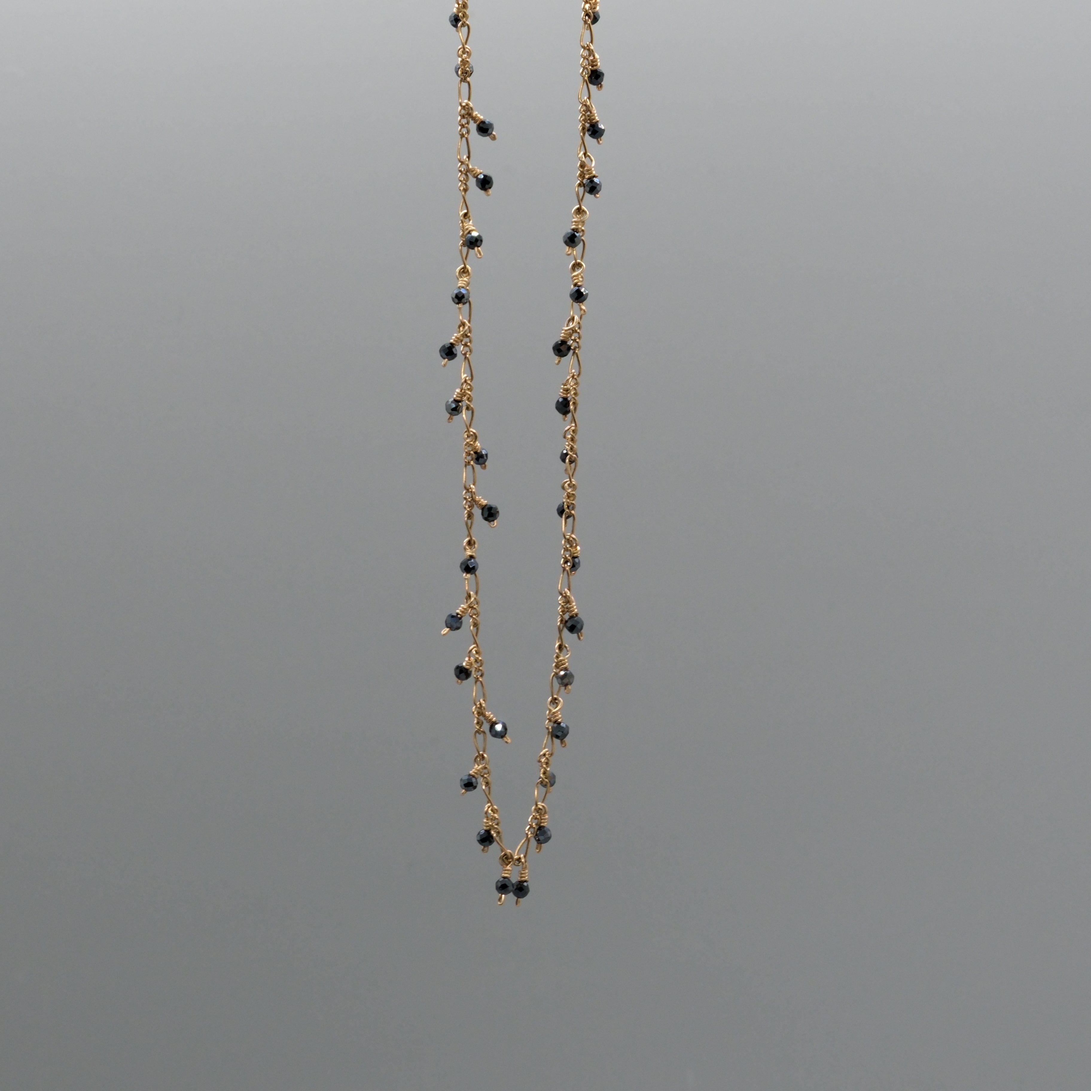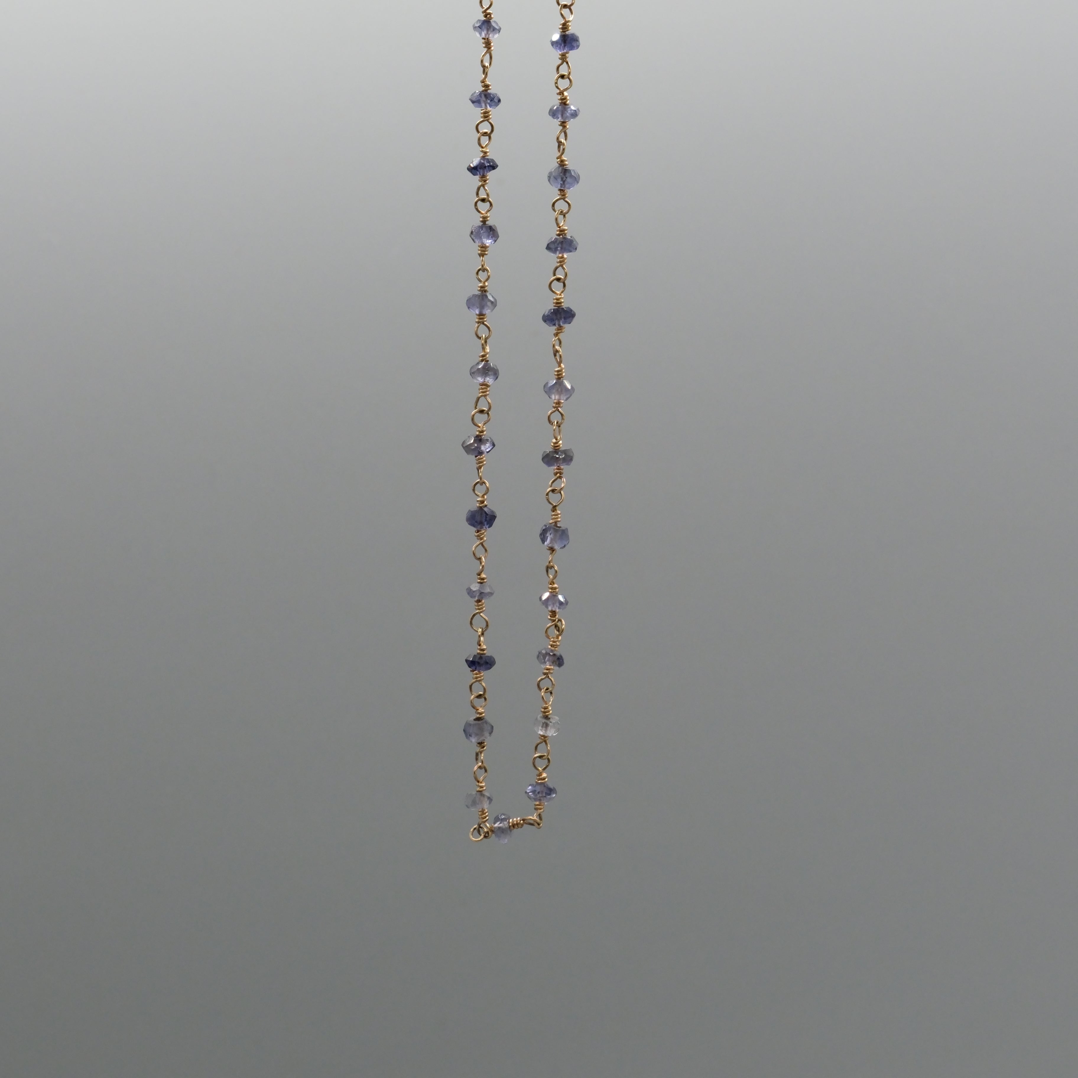 Delicate, colorful, and beautifully refined. This 16-inch necklace features a continuous strand of tiny faceted gemstones, each one hand-wrapped into a shimmering gold-filled chain. The result is a lightweight, elegant necklace that adds a subtle pop of color and sparkle to any outfit.
