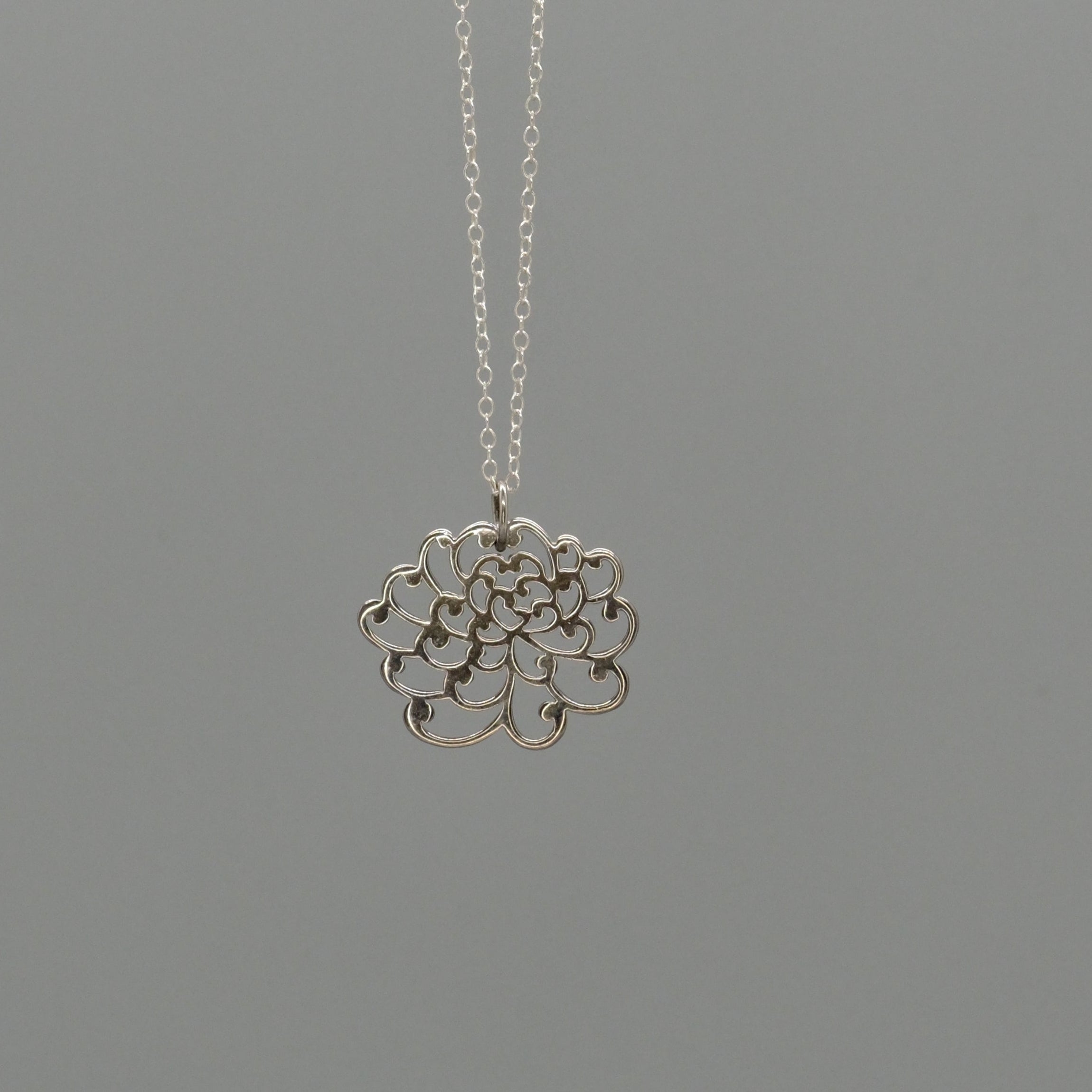 A delicate open-petal floral pendant crafted in shimmering silver, this necklace brings a soft touch of elegance to any look. The airy, lace-like design feels light and feminine, making it perfect for everyday wear or as a subtle statement piece. Suspended from an 18" silver chain, the Bloom Whisper Necklace captures the beauty of a flower in full bloom—gentle, graceful, and timeless.