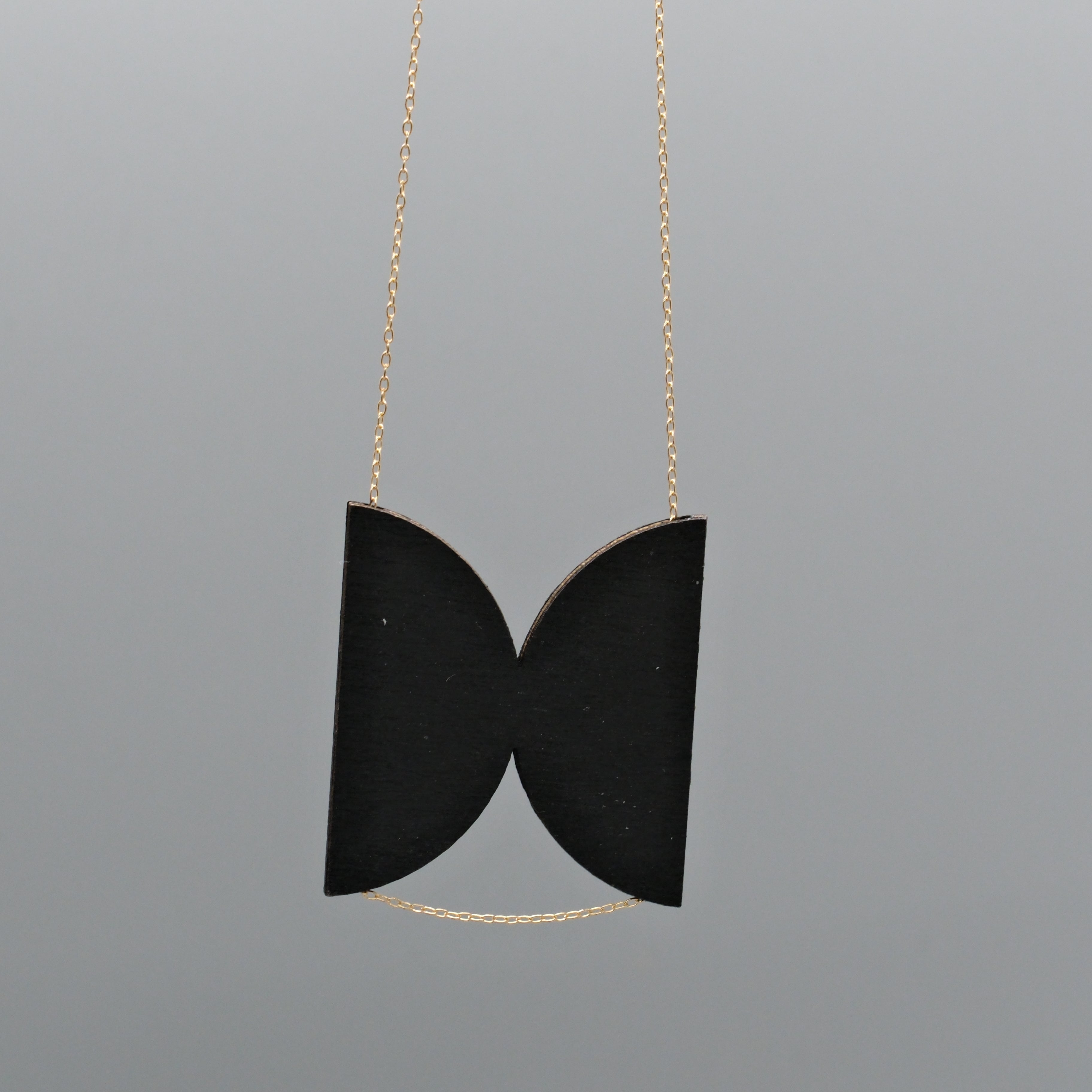Striking in its simplicity, this sculptural pendant is made from lightweight birch wood and finished in a deep matte black. The bold, symmetrical cutout shape gives the piece a refined, modern silhouette—both graphic and understated.