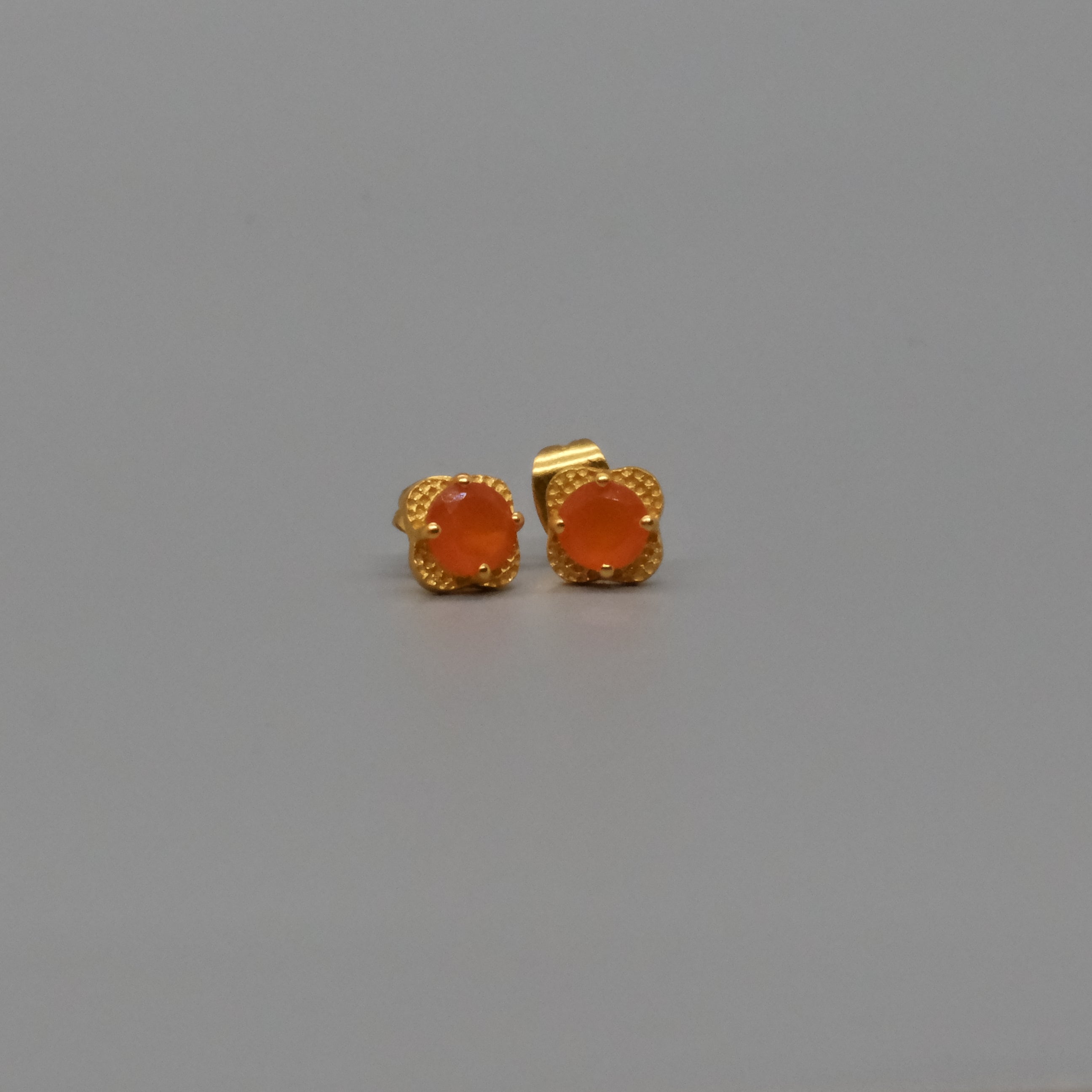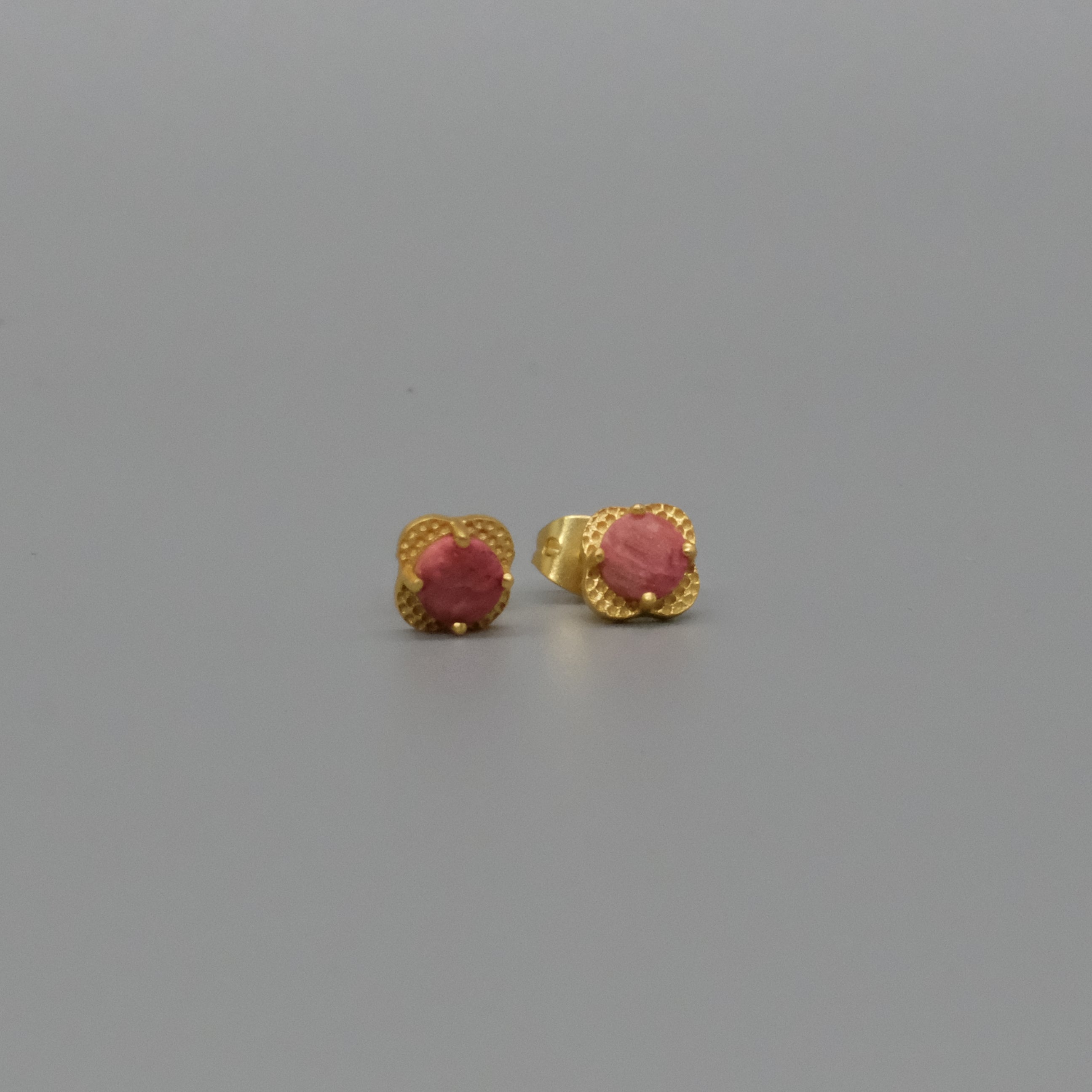 Sweet and simple, these petite stud earrings add the perfect pop of color to your everyday look. Each pair features a natural gemstone set in a textured, gold-plated brass bezel for a soft, handcrafted charm. Lightweight and easy to wear, they’re an effortless choice for daily styling or a subtle accent for special occasions.