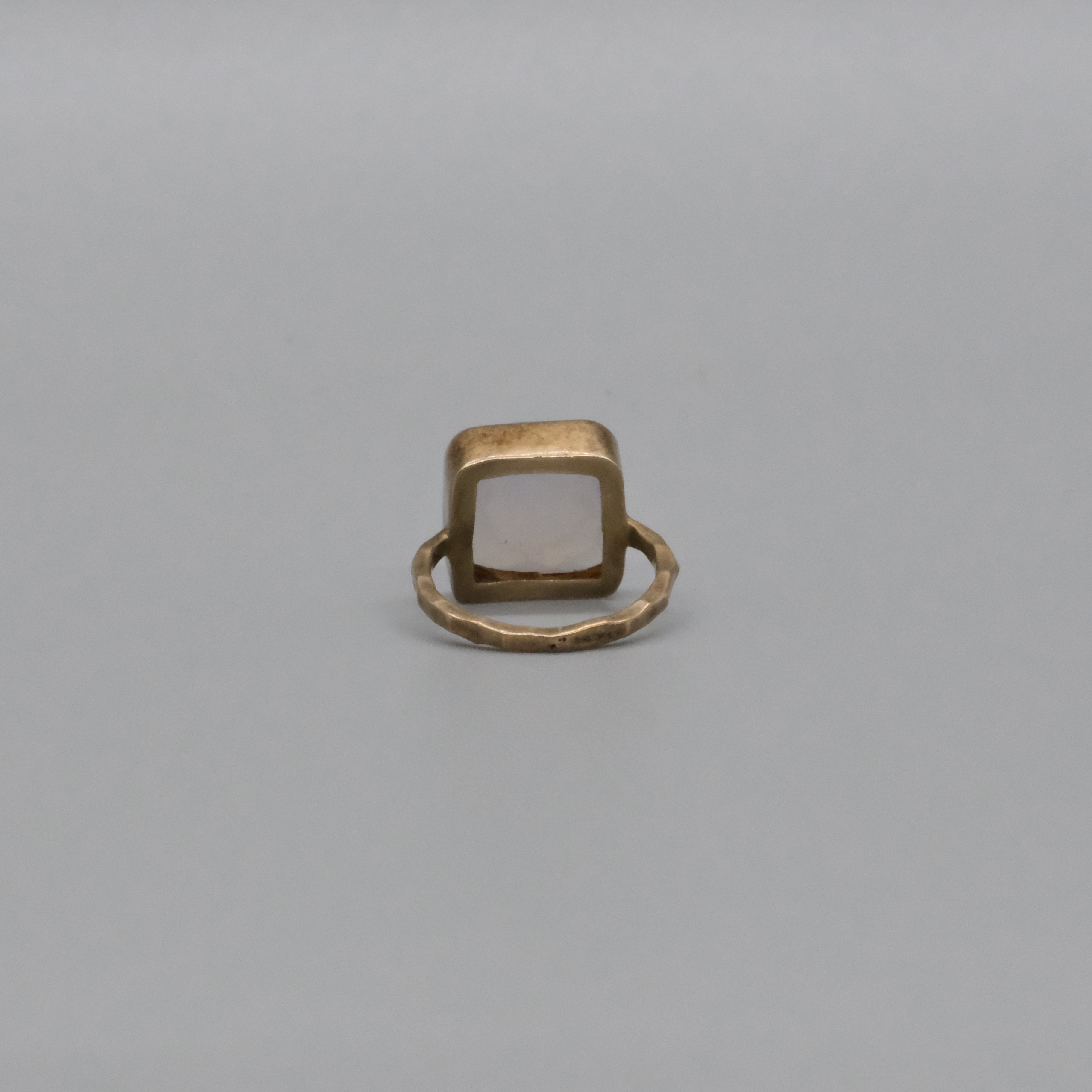 Bold yet refined, this statement ring features a faceted cushion-cut Chralcedony set in a sleek bezel for a modern, sculptural look. Available in 14k gold-plated sterling silver, this piece is designed to elevate both everyday outfits and special occasions.