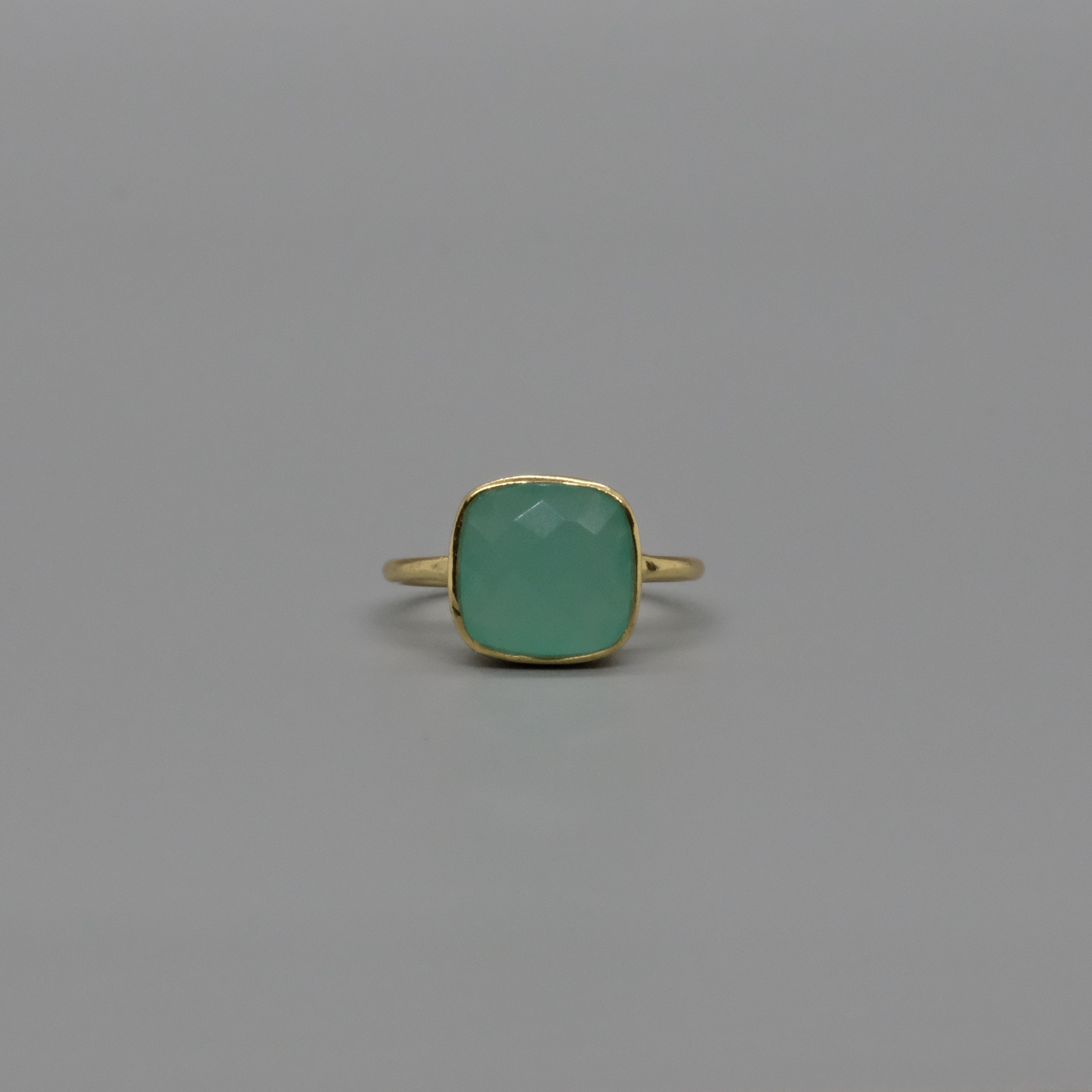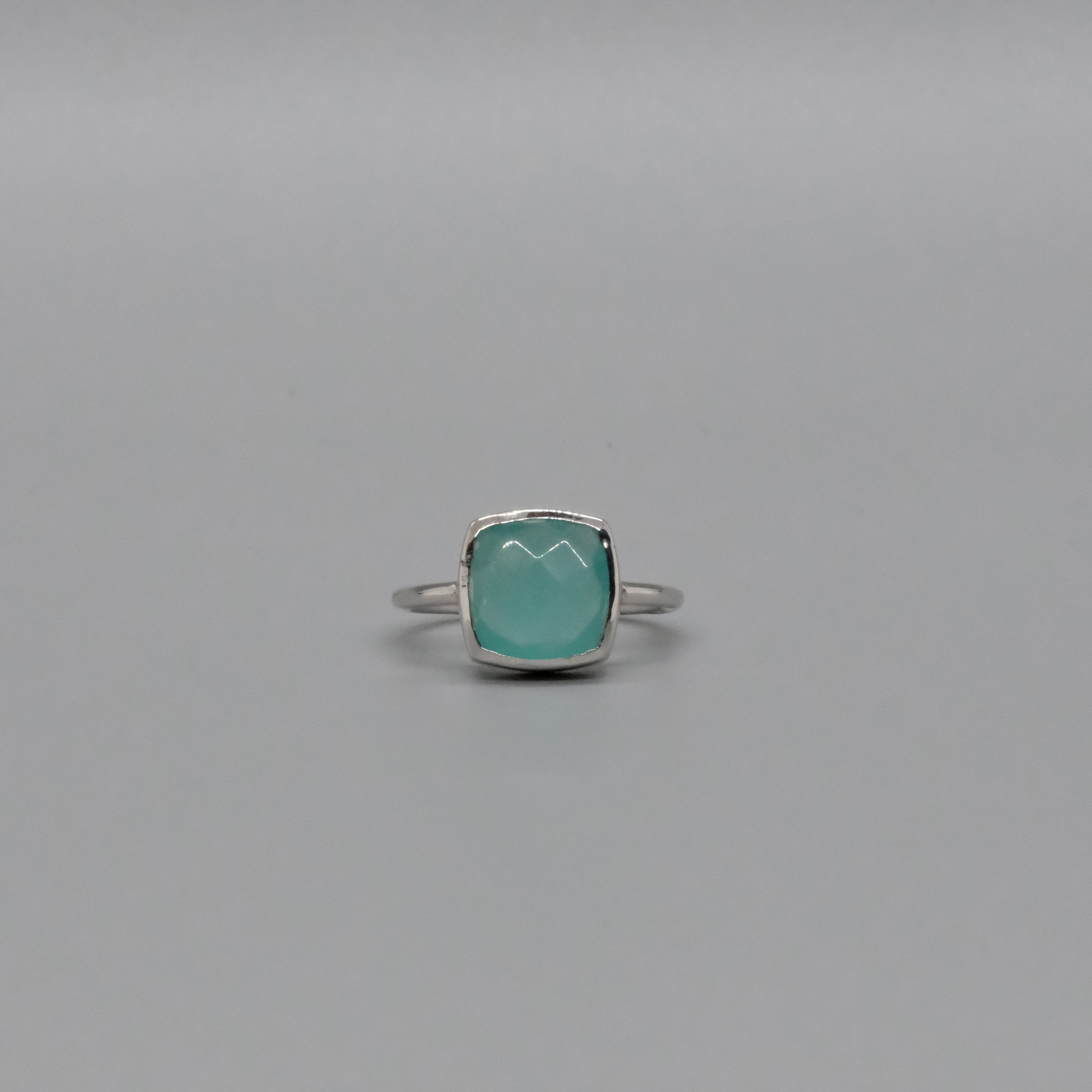 • Gemstone: Natural faceted Chalcedony (cushion cut)