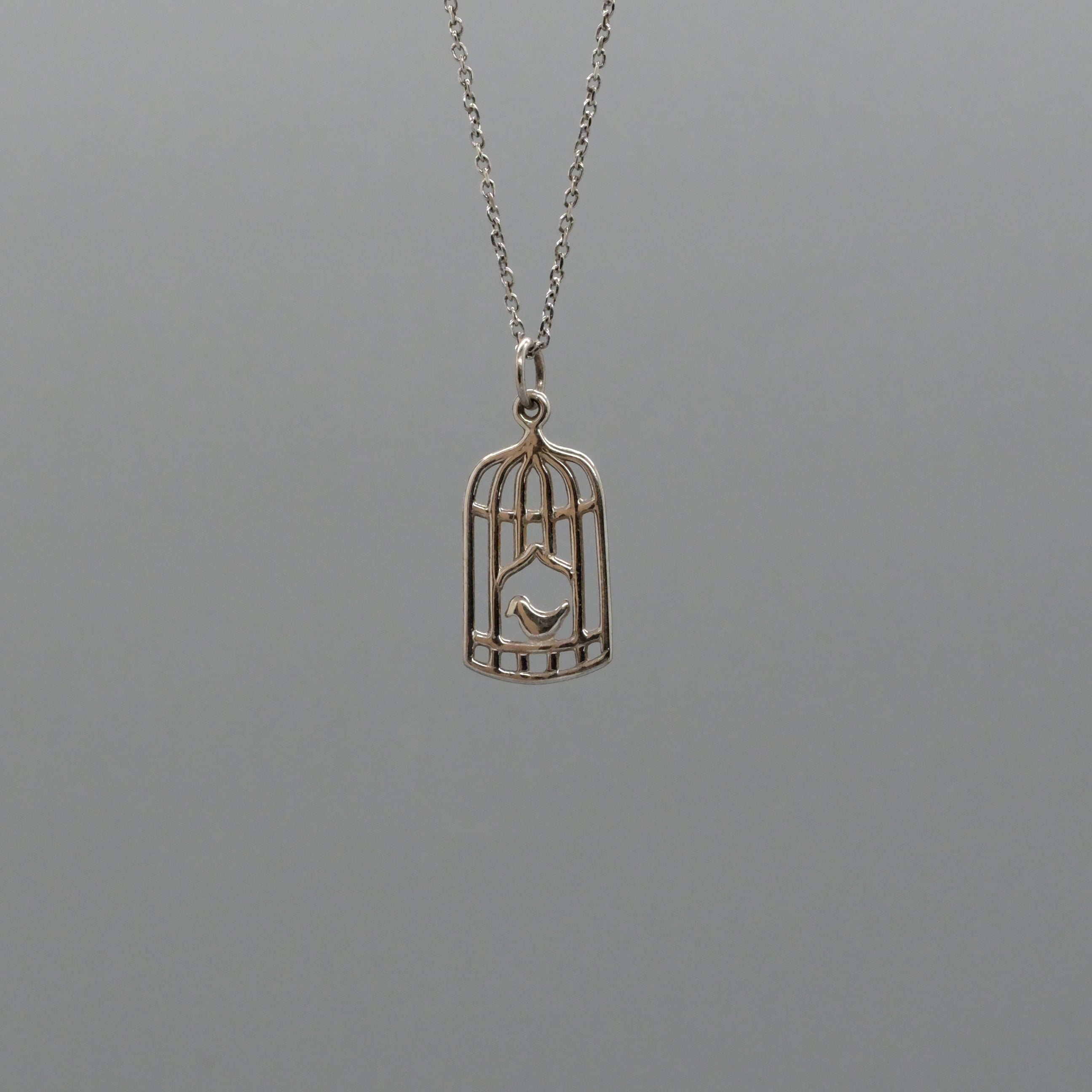 Delicate and full of charm, this sterling silver necklace features an airy openwork birdcage with a tiny perched bird at its center. The lightweight design hangs gracefully from an 18" chain, creating a sweet, whimsical piece that symbolizes freedom, hope, and gentle beauty. Perfect for everyday wear or gifting to someone who loves meaningful, story-filled jewelry.