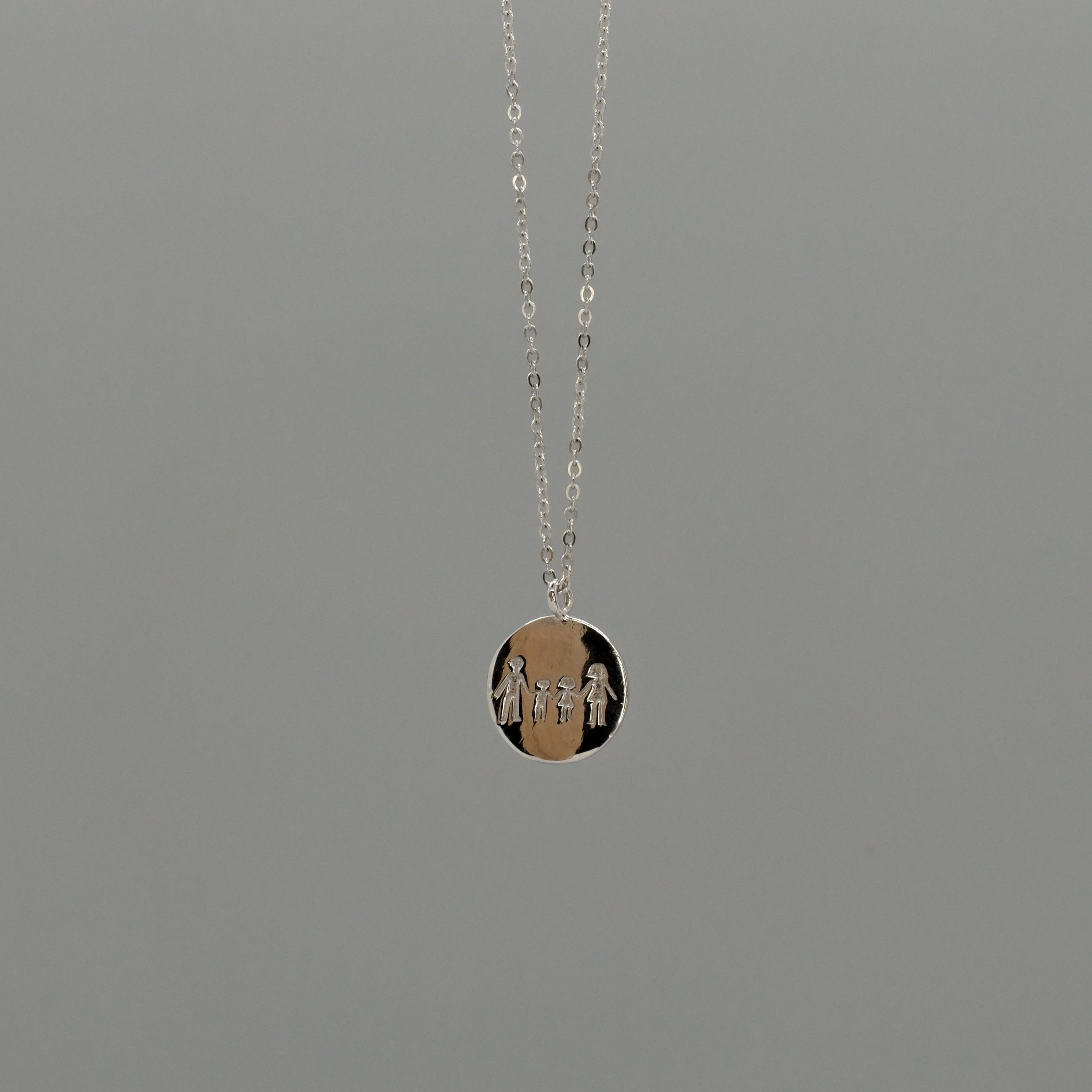 A sweet and meaningful piece you can wear close to your heart. This sterling silver necklace features a round pendant with a simple cut-out family silhouette, a quiet reminder of love, connection, and the people who matter most. Lightweight, minimalist, and perfect for everyday wear, it’s a beautiful tribute to your tribe. 18" long.