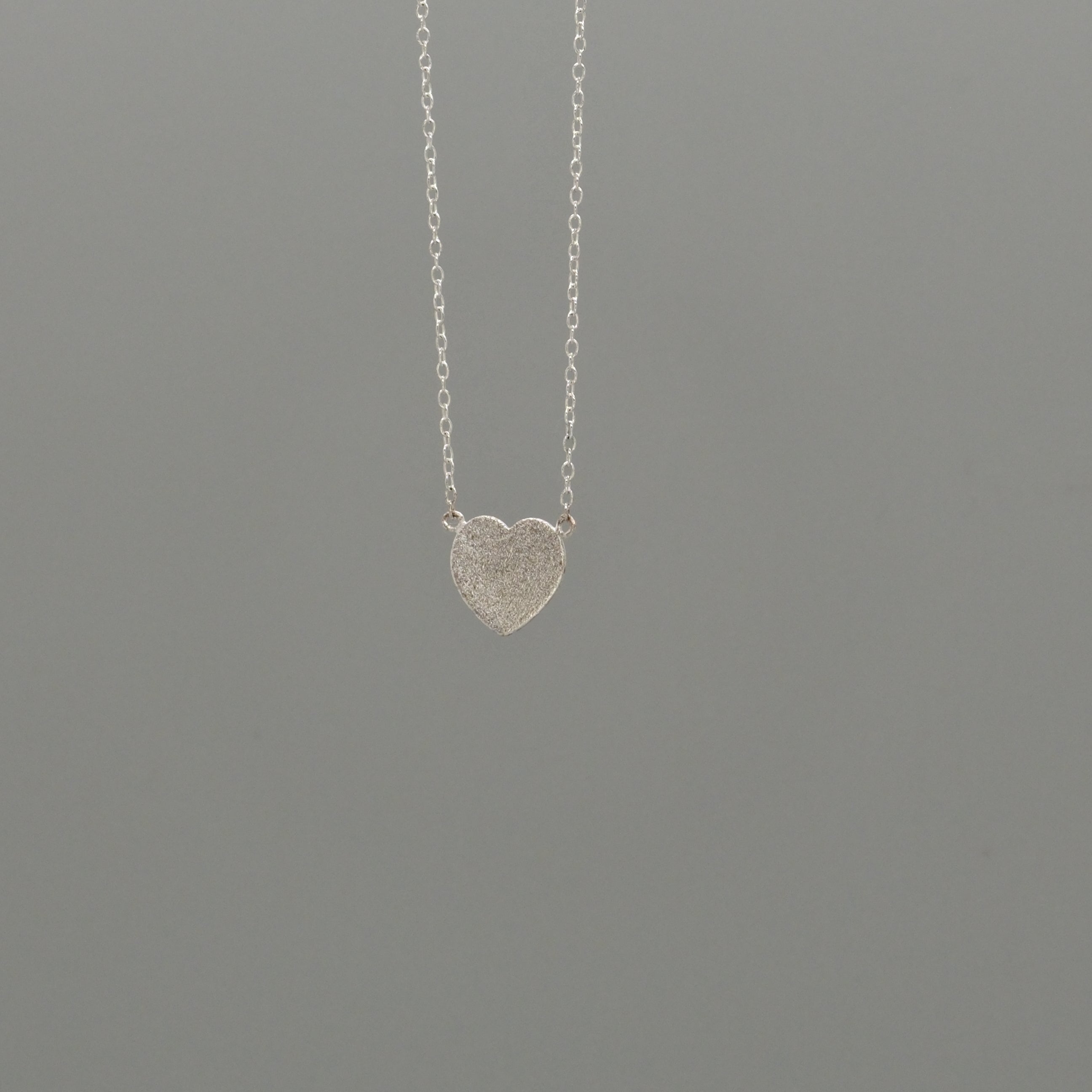 A sweet and simple symbol of love, this dainty silver necklace features a frosted heart pendant that shimmers softly with every movement. Its textured surface gives it a modern, understated sparkle, perfect for everyday wear or as a meaningful gift. Suspended on a delicate chain, this piece adds a touch of elegance and sentiment to any look. 18" long.