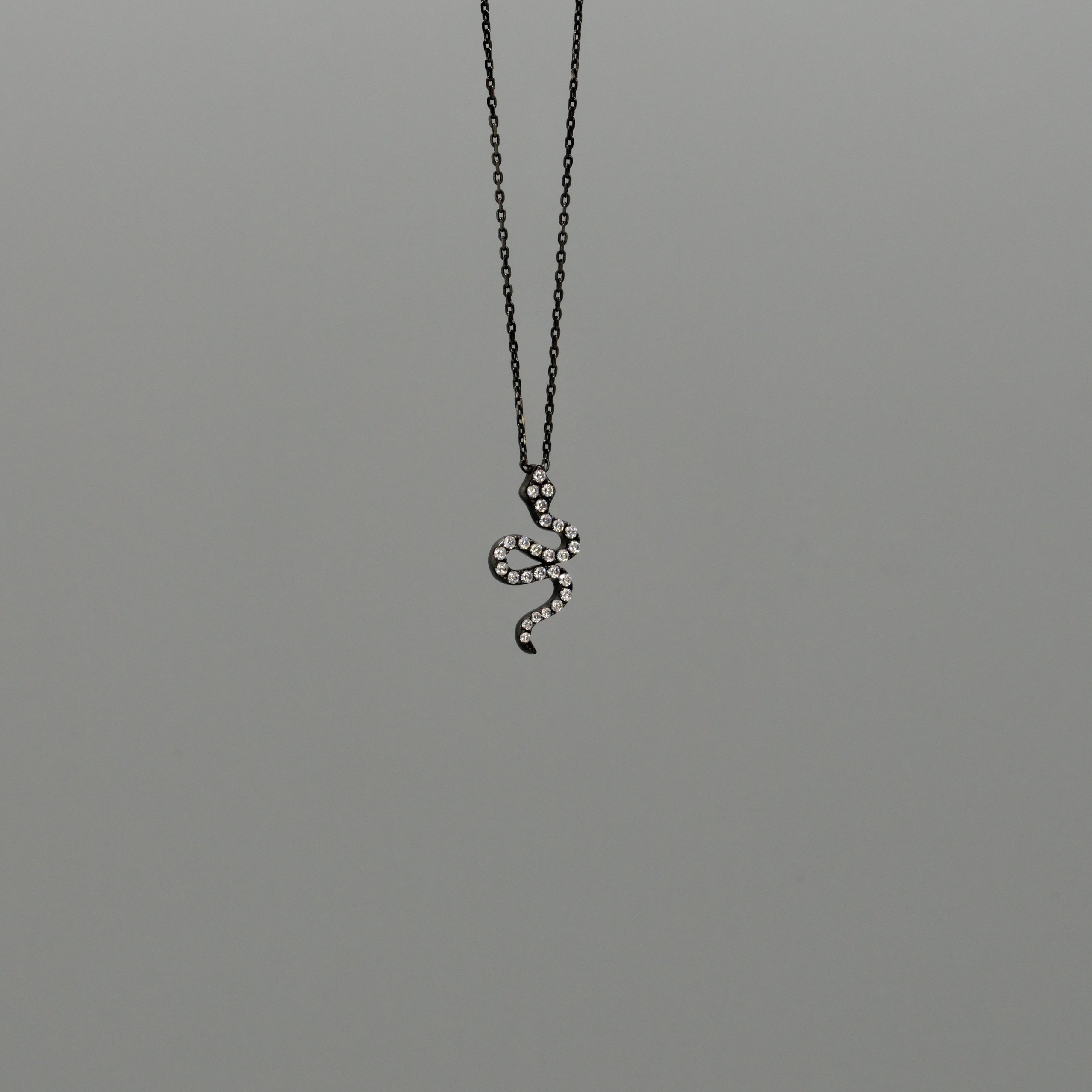Strike the perfect balance between edgy and elegant with our Midnight Serpent Necklace. This sleek black-plated chain features a shimmering pavé-CZ snake charm that catches the light with every move. Dainty yet bold, it adds just the right touch of mystery to any look. Perfect for stacking or wearing solo when you want a little extra bite. 18" long.