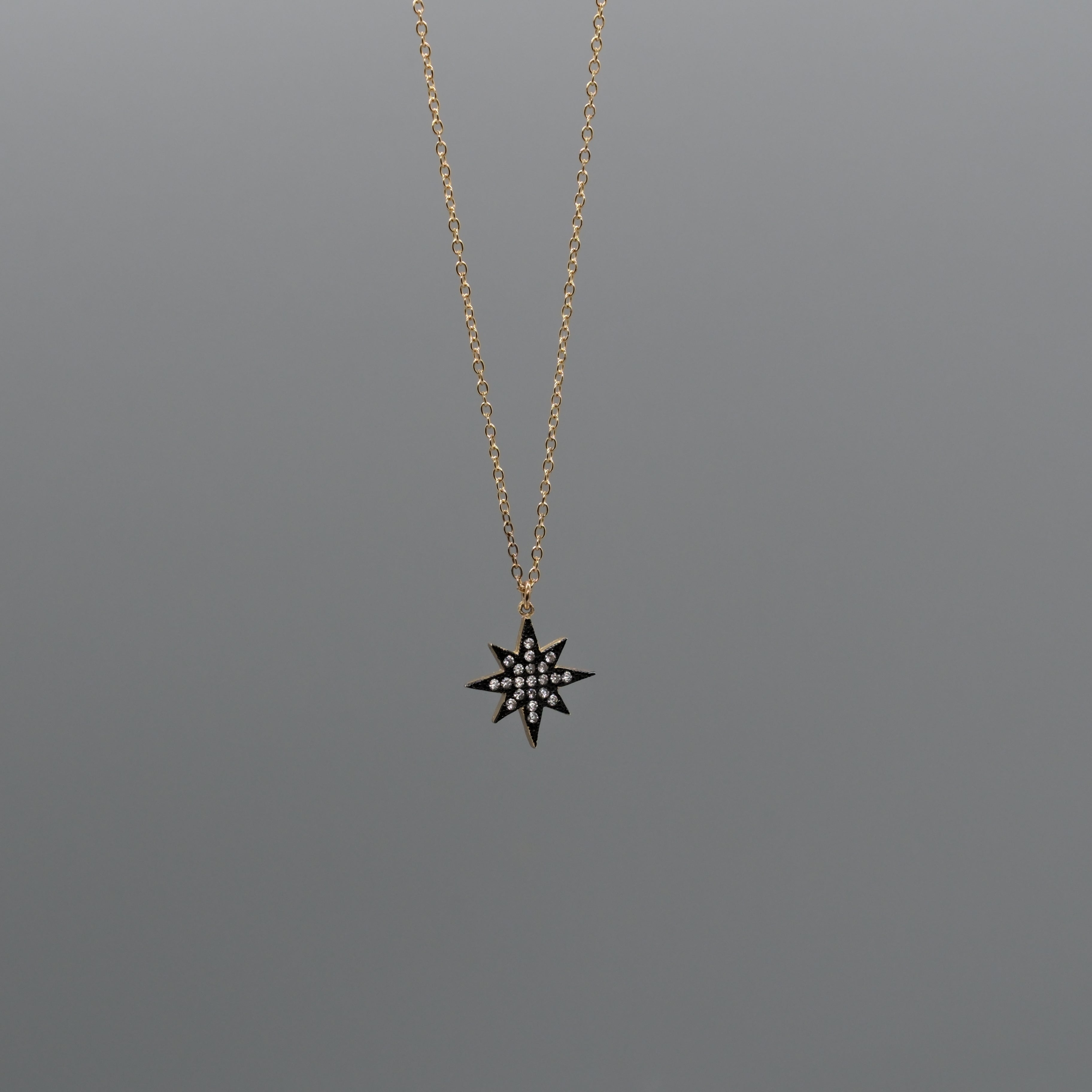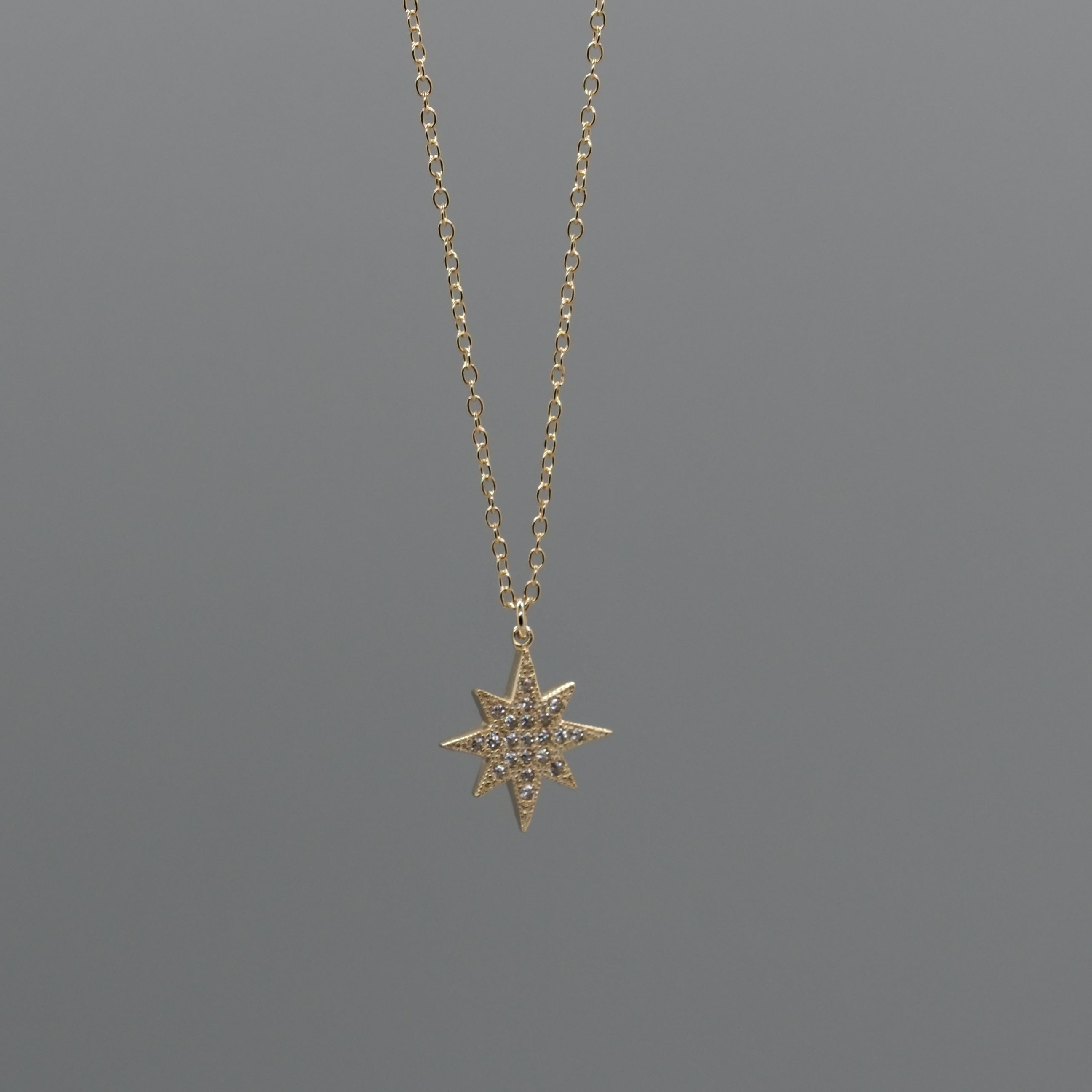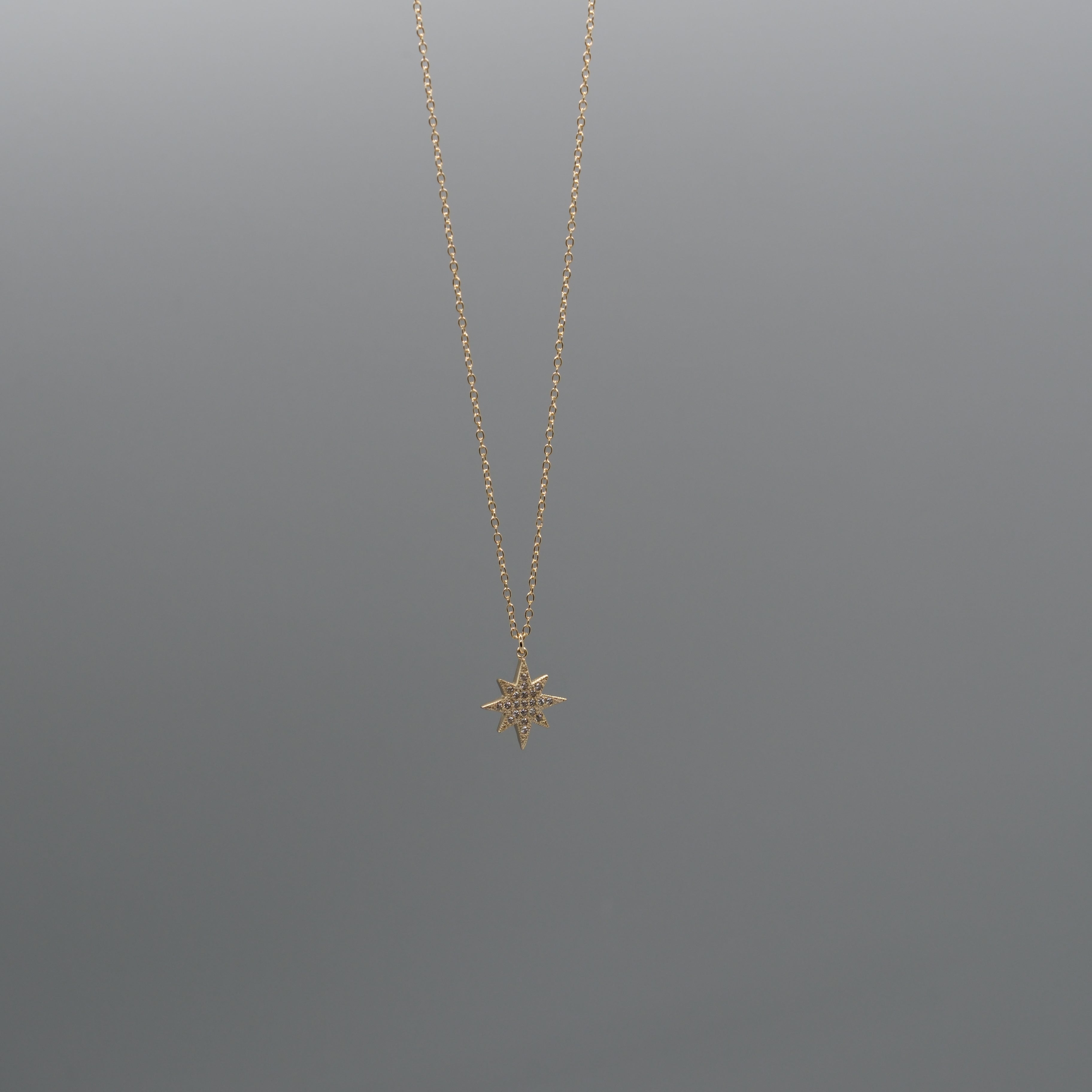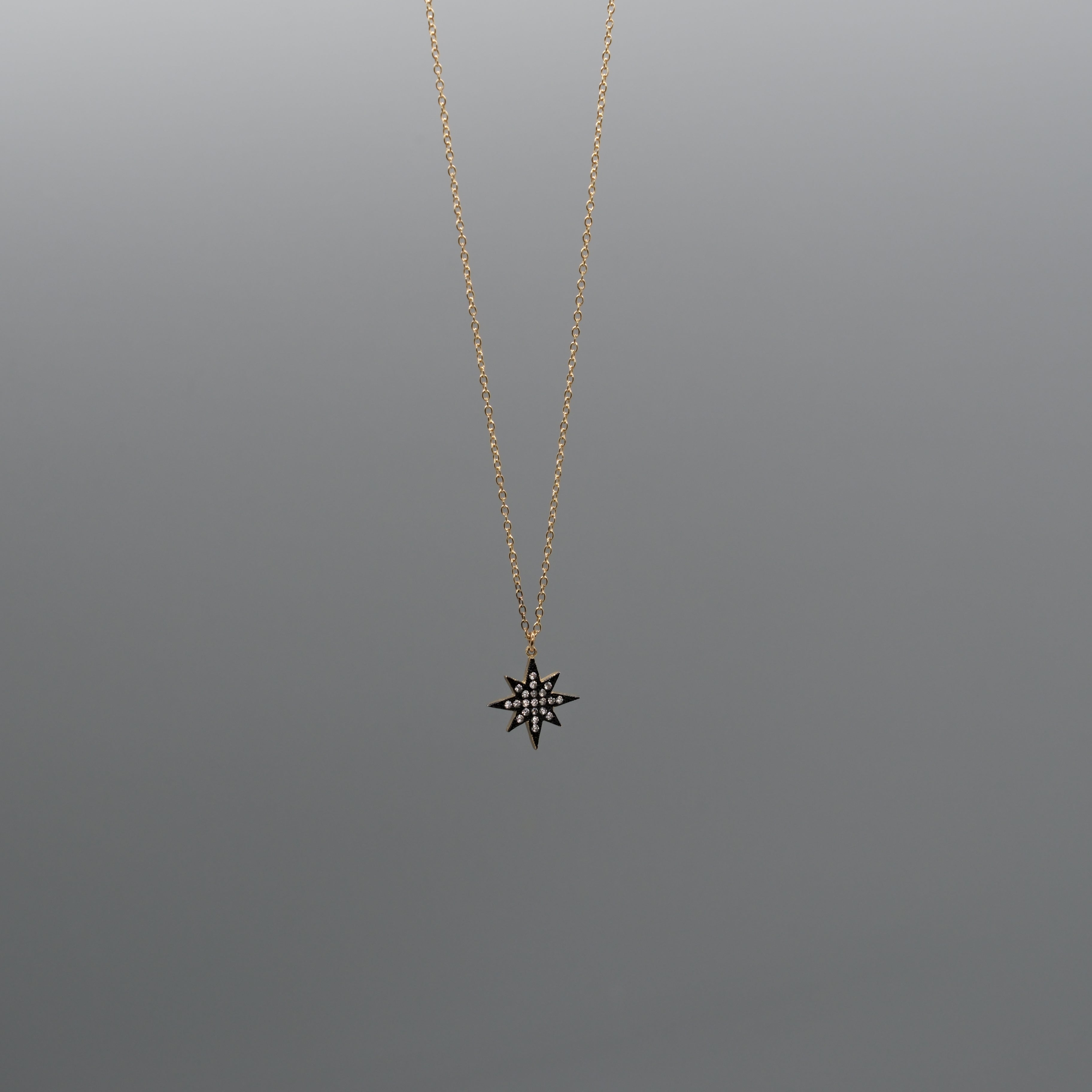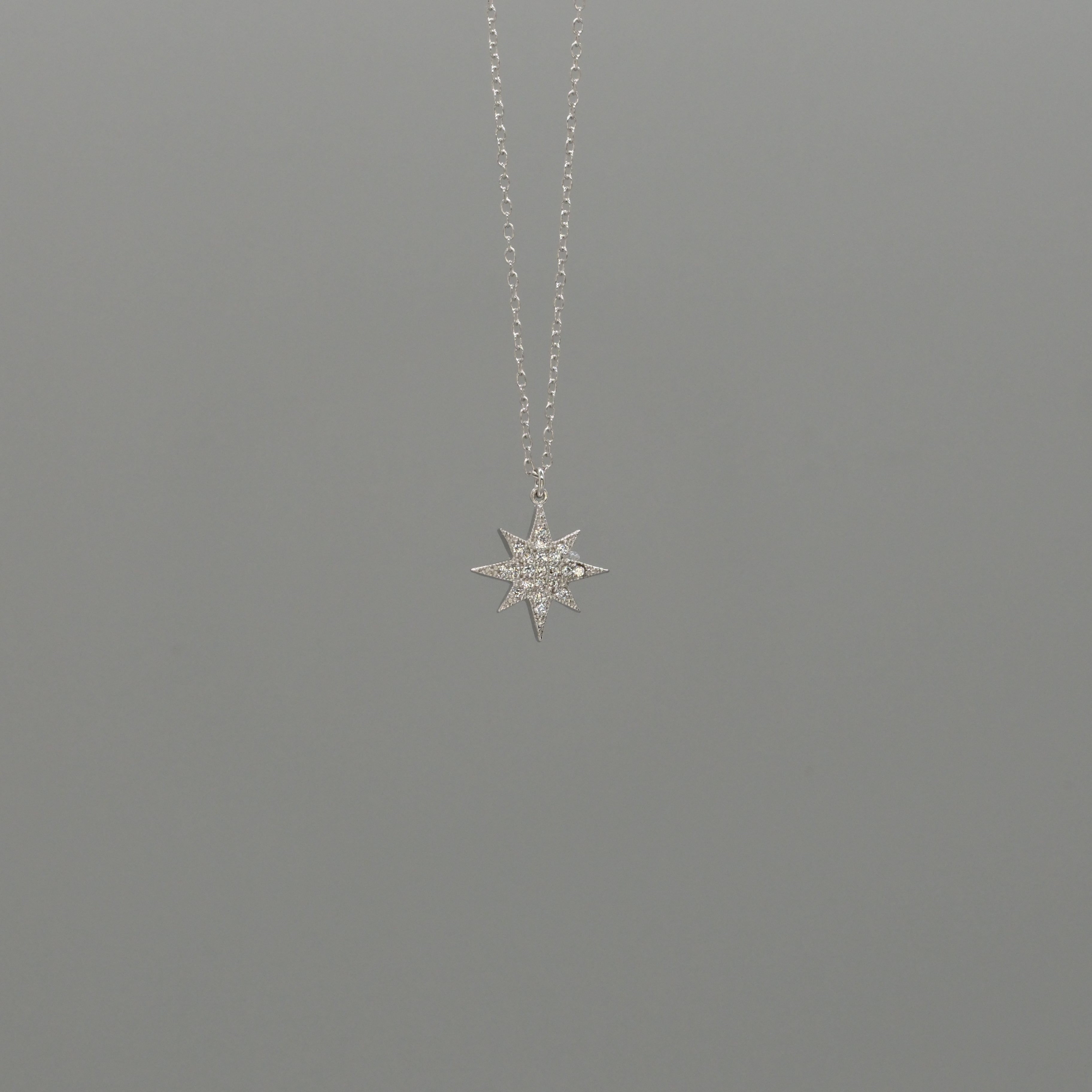 Small eight sided silver star is embellished with tiny pave-set cubic zirconias and adorns a simple sterling silver chain to create this everyday, go-to necklace.