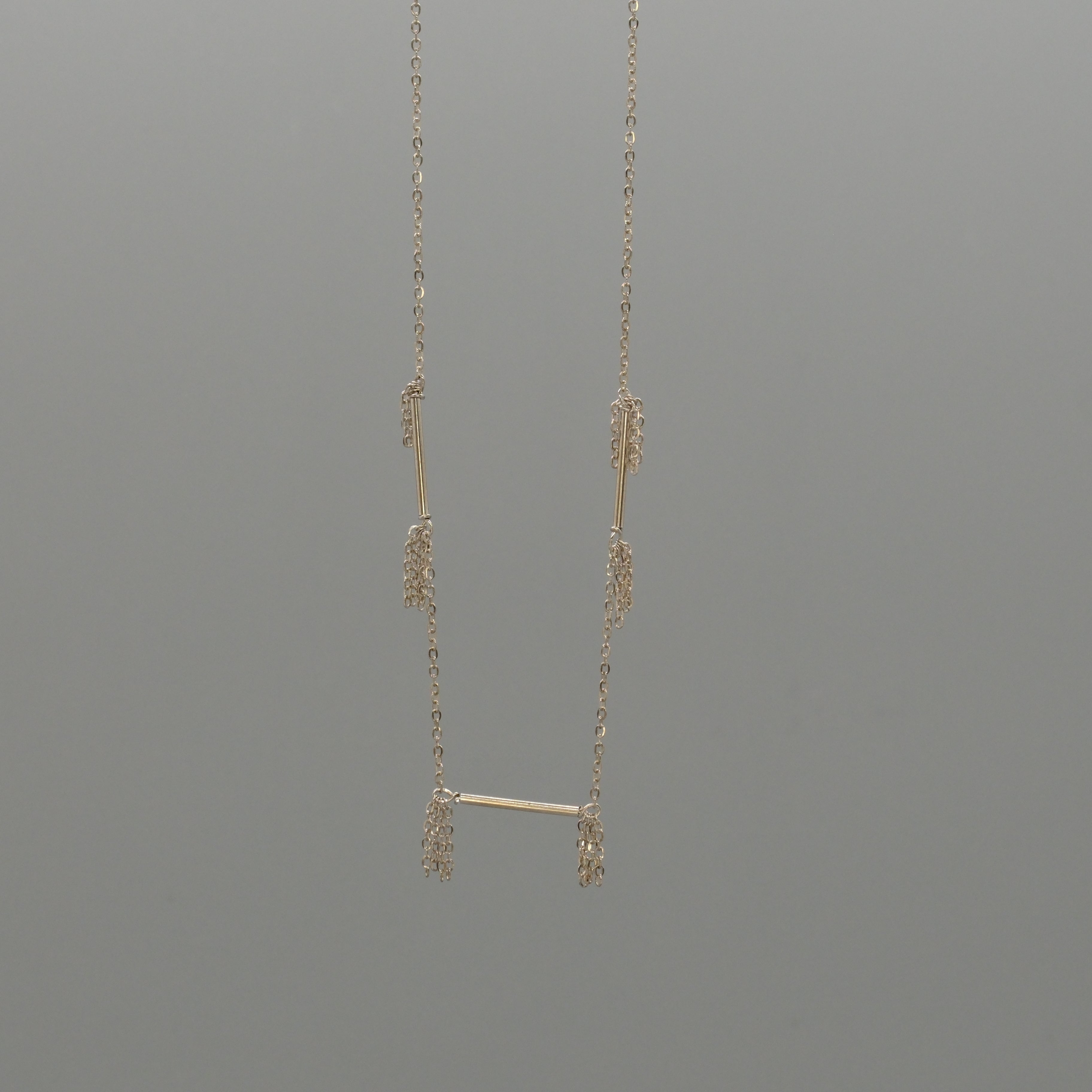 Meet the Cascade Bar Necklace, a sleek and modern piece designed to add effortless movement to your everyday style. Crafted in bright sterling silver, this unique necklace features a slender horizontal bar accented with cascading mini-chains that shimmer with every step. At 18" long, it layers beautifully or stands out all on its own, perfect for anyone who loves jewelry with a touch of playful elegance.